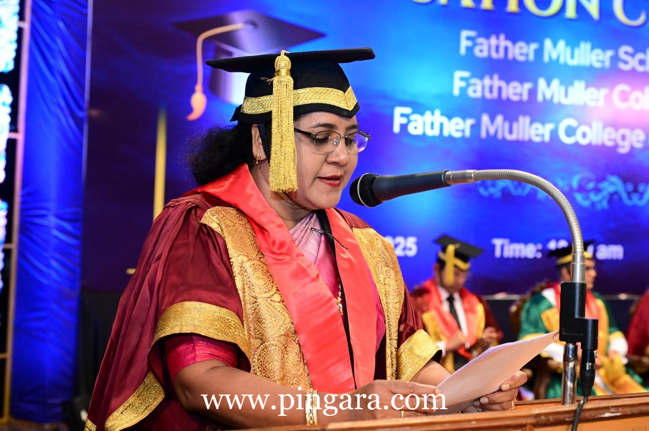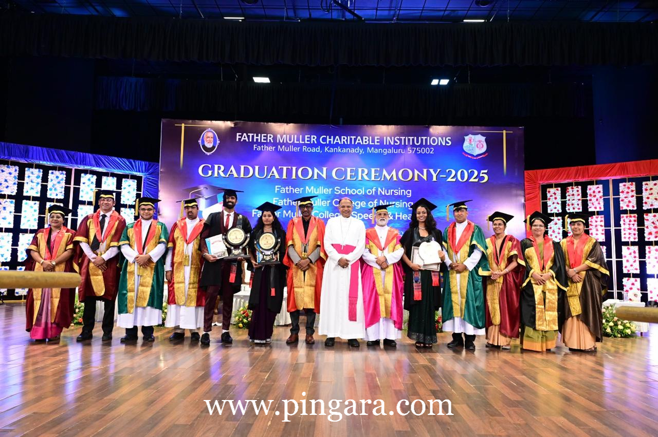 Mangalore: The Father Muller Convention Centre came alive with pride and promise on the morning of Saturday, April 5, 2025, as the Father Muller School and College of Nursing, and the Father Muller College of Speech and Hearing celebrated their Graduation Ceremony. This significant occasion, under the aegis of Father Muller Charitable Institutions (FMCI), honoured the academic achievements and professional oaths of the graduating classes, while also recognizing exceptional talents across the disciplines of Nursing and Speech & Hearing.