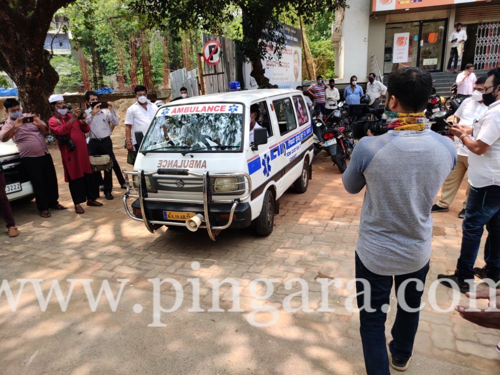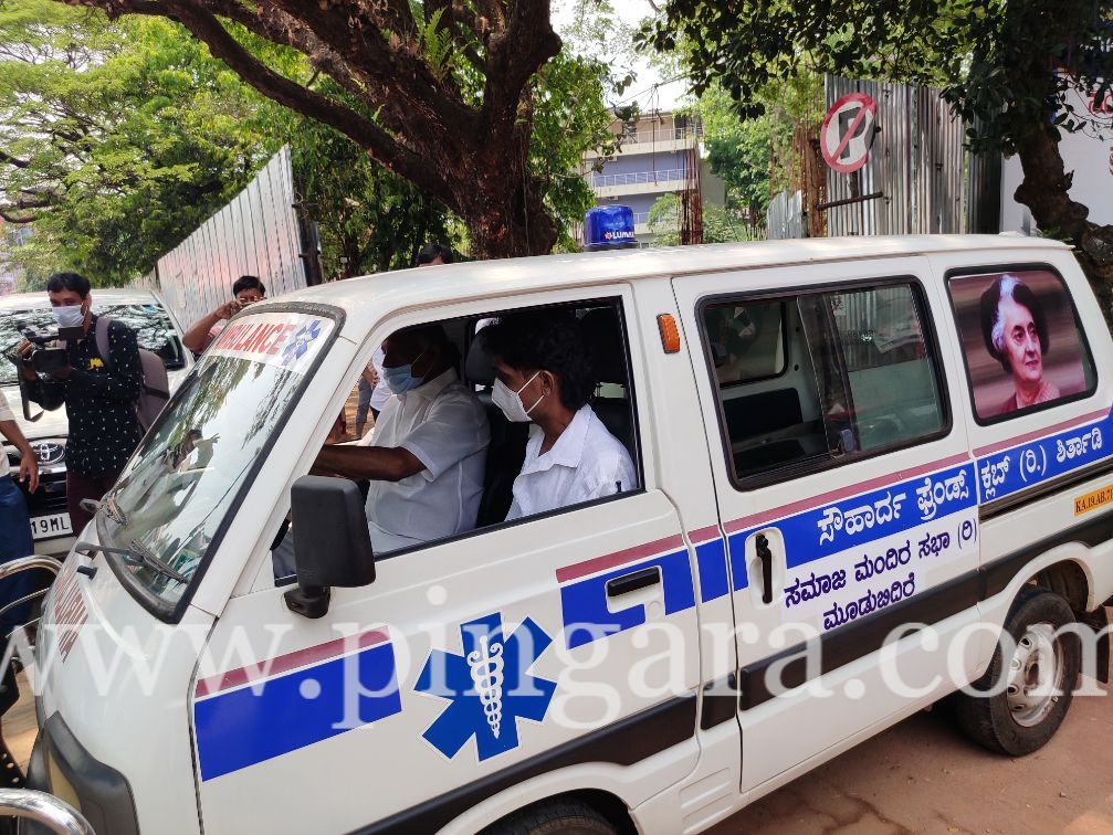 Ex Mla Abhayachandra Jain, Samaja Mandir Moodbidri, and a Bangalore friend contributing fifty thousand each launched a free corona ambulance at Moodbidri congress office with a help line.