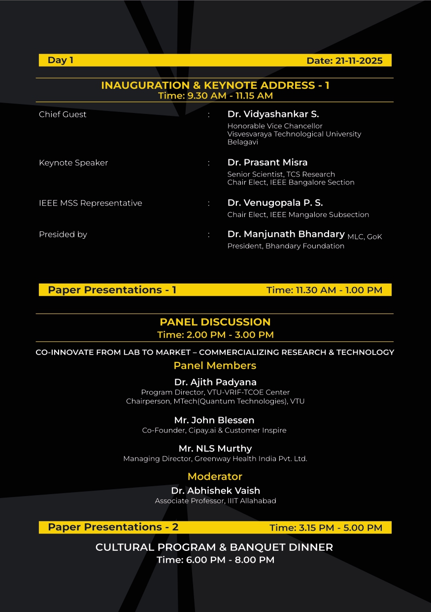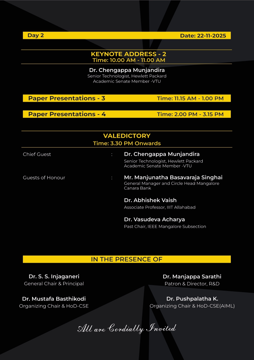 This marks the third IEEE international conference hosted by Sahyadri College of Engineering and Management. Last year, we successfully organized the IEEE COSMIC-2024, and in 2023, organizedIEEE DISCOVER-2023 in collaboration with the IEEE Mangalore Subsection and IEEE Bangalore Section, further solidifying our commitment to advancing technology and research. We look forward to the vibrant discussions and collaborations that COSMIC-2025 will inspire.