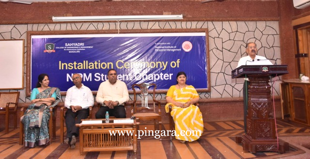 Mangaluru: The Installation Ceremony of the NIPM Student Chapter at Sahyadri marked a significant milestone in the institution's commitment to fostering holistic development for MBA students. Sahyadri's enduring partnership with the National Institute of Personnel Management (NIPM), Mangaluru Chapter, has been characterized by a lifetime membership, leading to collaborative initiatives such as conferences, expert talks, quizzes, internships, and placements.