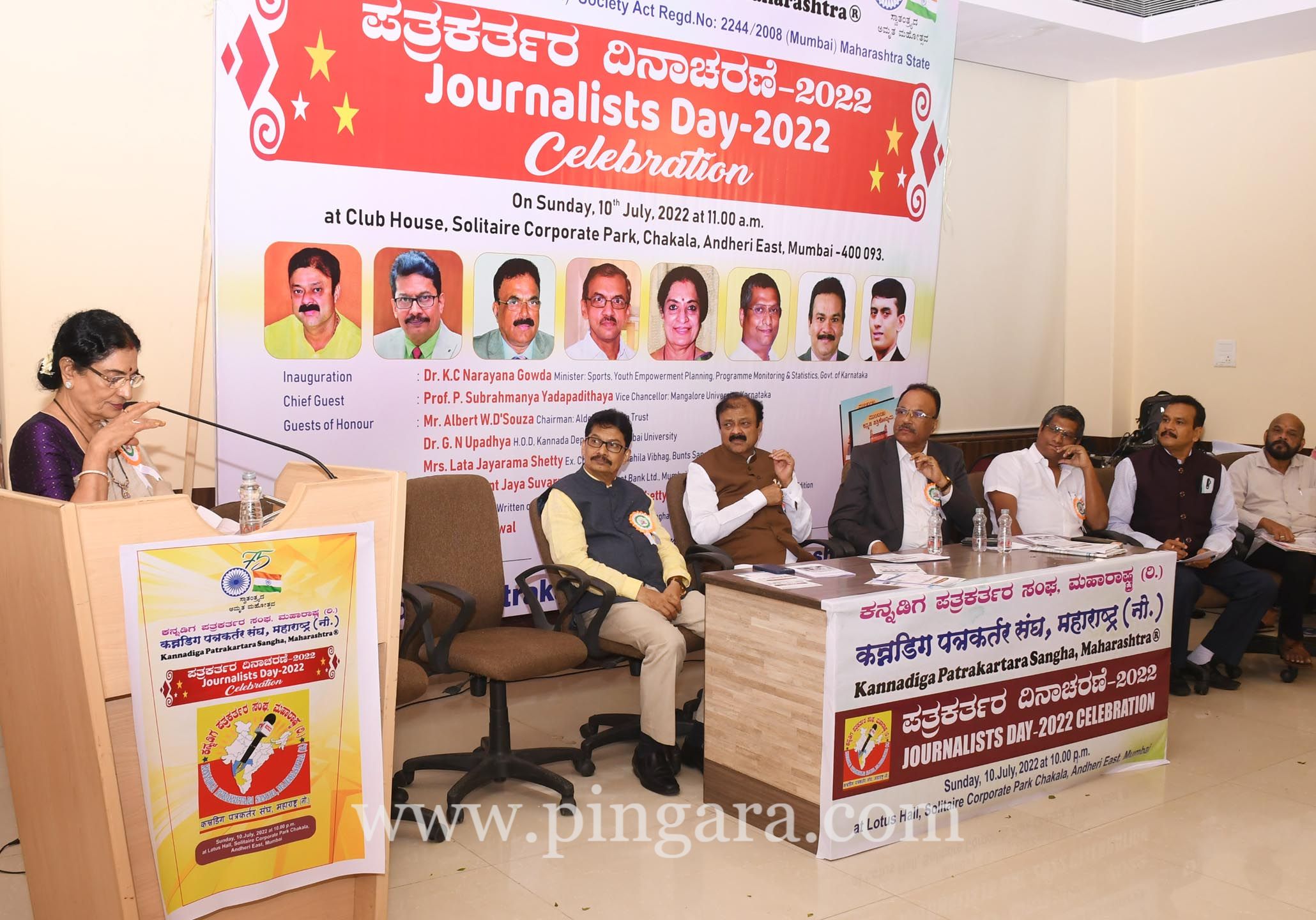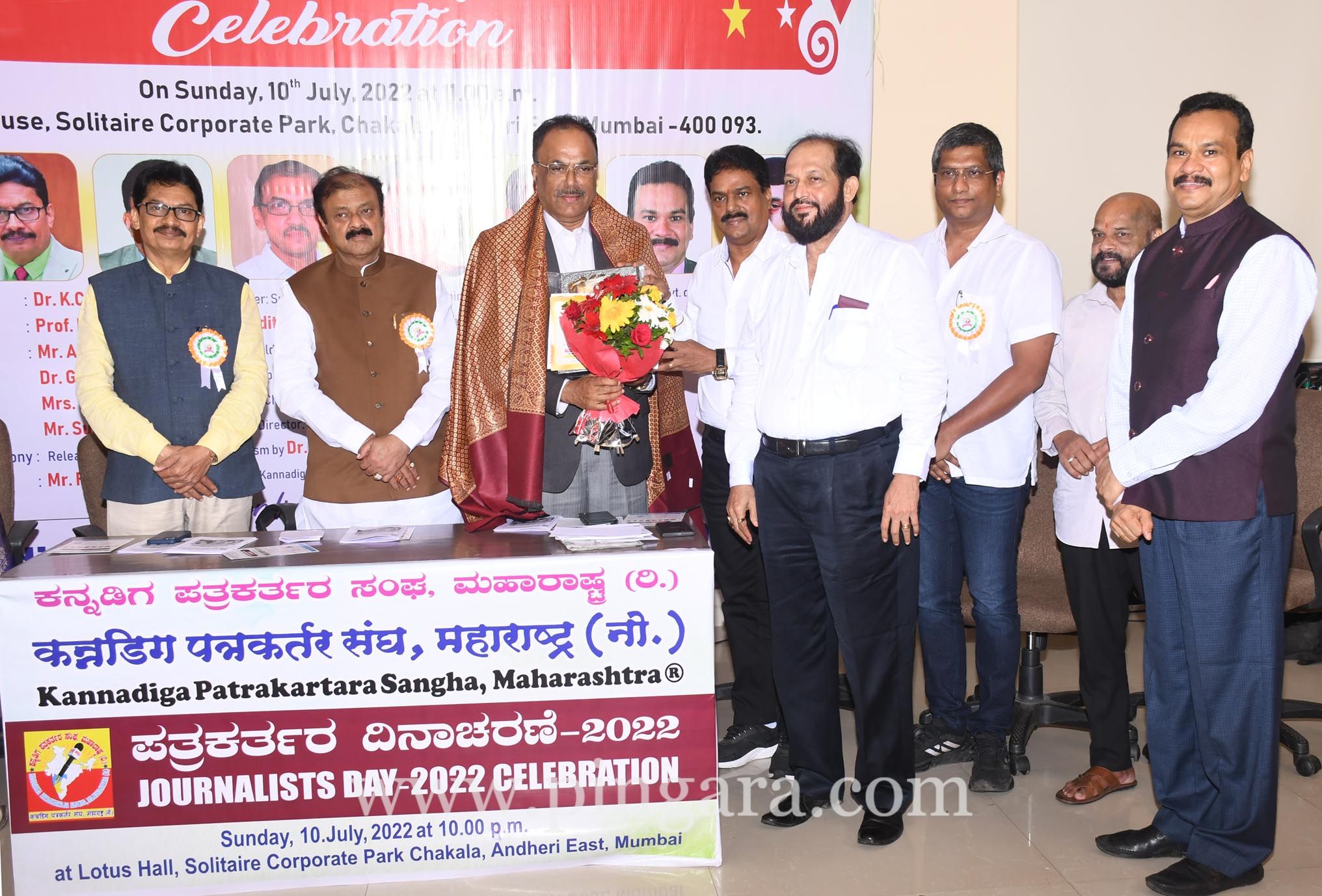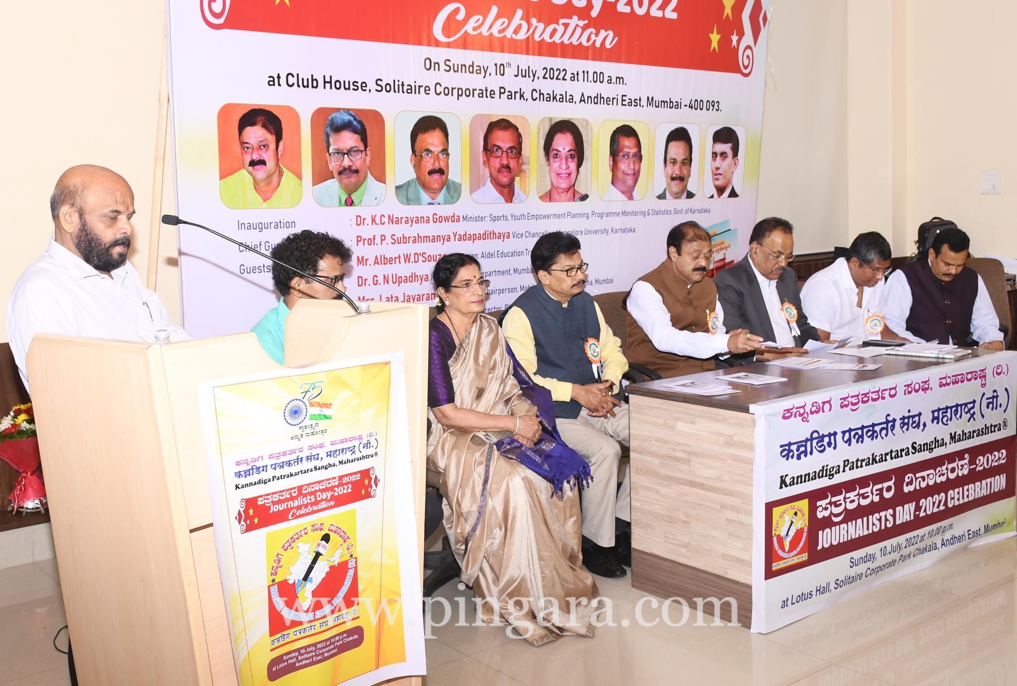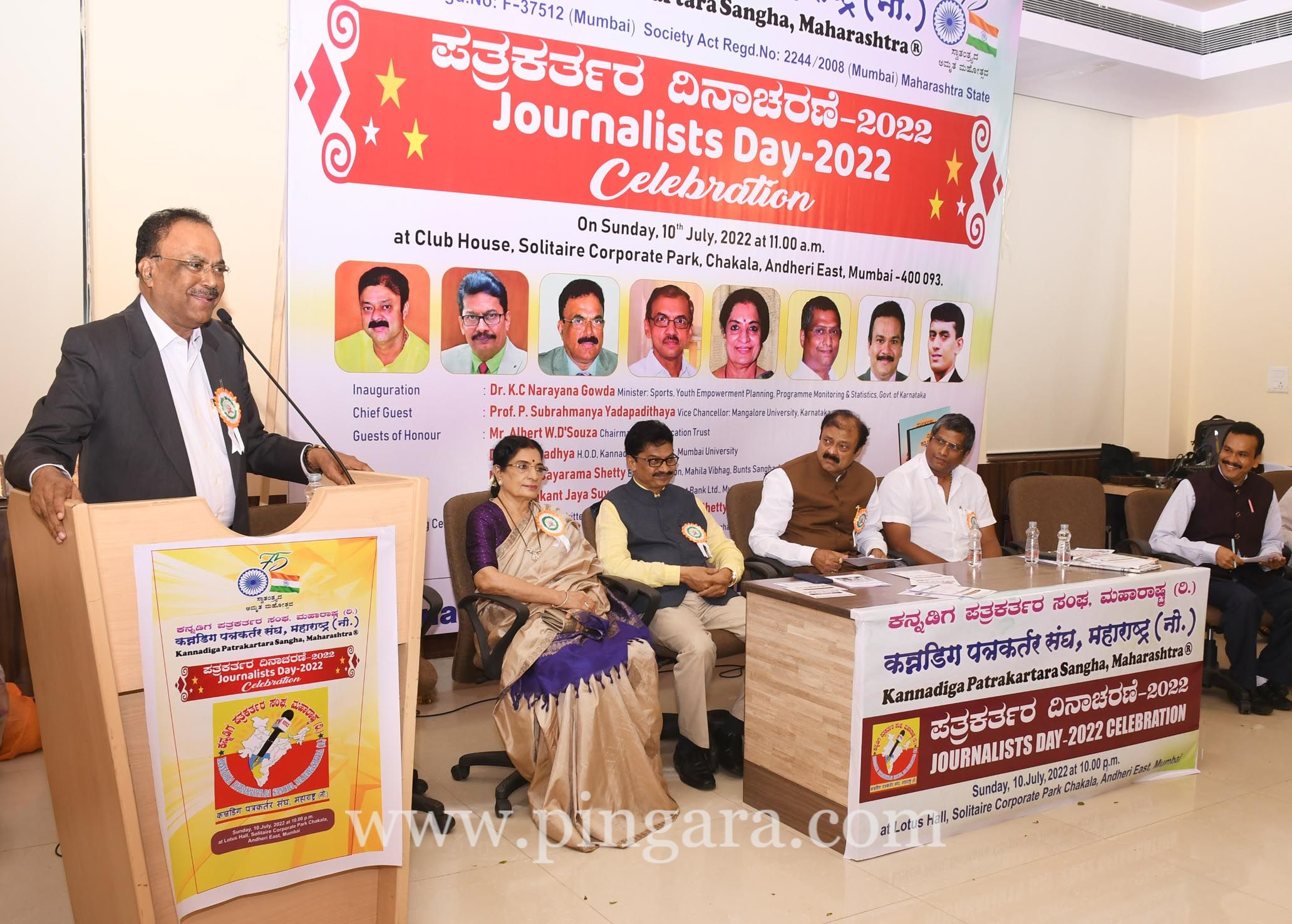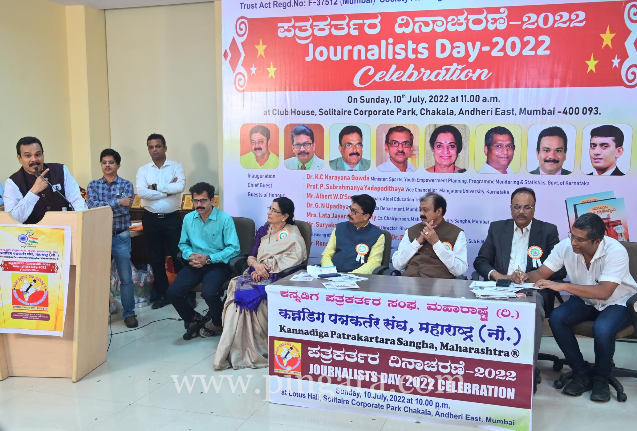 Mumbai,July.10: Journalists are distinguished citizens who provide justice to the society. So journalists are instrumental in dignity and recognition. Such journalists should give importance to objective reporting without showing any rhetorical content in their writing. The journalists should never hesitate to tell the truth and warn the society Said Minister of Sports, Youth Empowerment, Silk, Planning and Statistics, Government of Karnataka Dr. K.C Narayana Gowda.