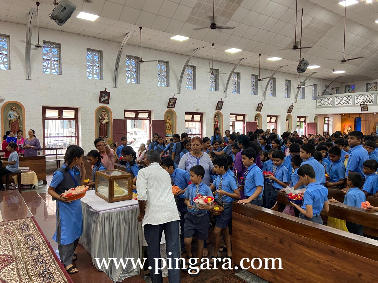 Karkala: Second Day of Novena began with showering flowers on infant Mary at Christ King Church, Karkala.