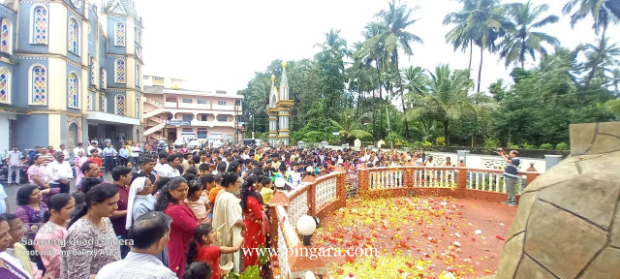 Karkala: Sixth day of Novena began with showering flowers on infant Mary at Christ King Church, Karkala.