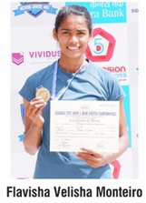 Young National gold medalist high jumper Flarvisha Monteiro has sports in her genes, but her career was honed under coaches Balakrishhna and HarshiniKumari. The daughter of Felix Monteiro ad Flavia D’Souza, Flavisha is studying law at the SDM Law College, Mangaluru. She first participated in the National Junior Athletics Championship 2016 held at Coimbatore, Tamil Nadu.