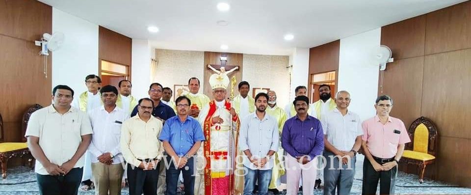 At 9:15am Selection process for the Service of the Lord Jesus in the Region of Karnataka led by NSC Chairman Bro. Joy Anthony, Bro. Savio Mascarenhas and Bishop Lawrence. Those Candidates introduced themselves and showed willingness to serve the region. Then the selection process was led. At 11am discernment team started the process. Meantime intercessory adoration was held in the chapel. Rev. Fr Elias Sequeira - Spiritual Director of Diocese of Chikmagalur led the intercessory adoration.