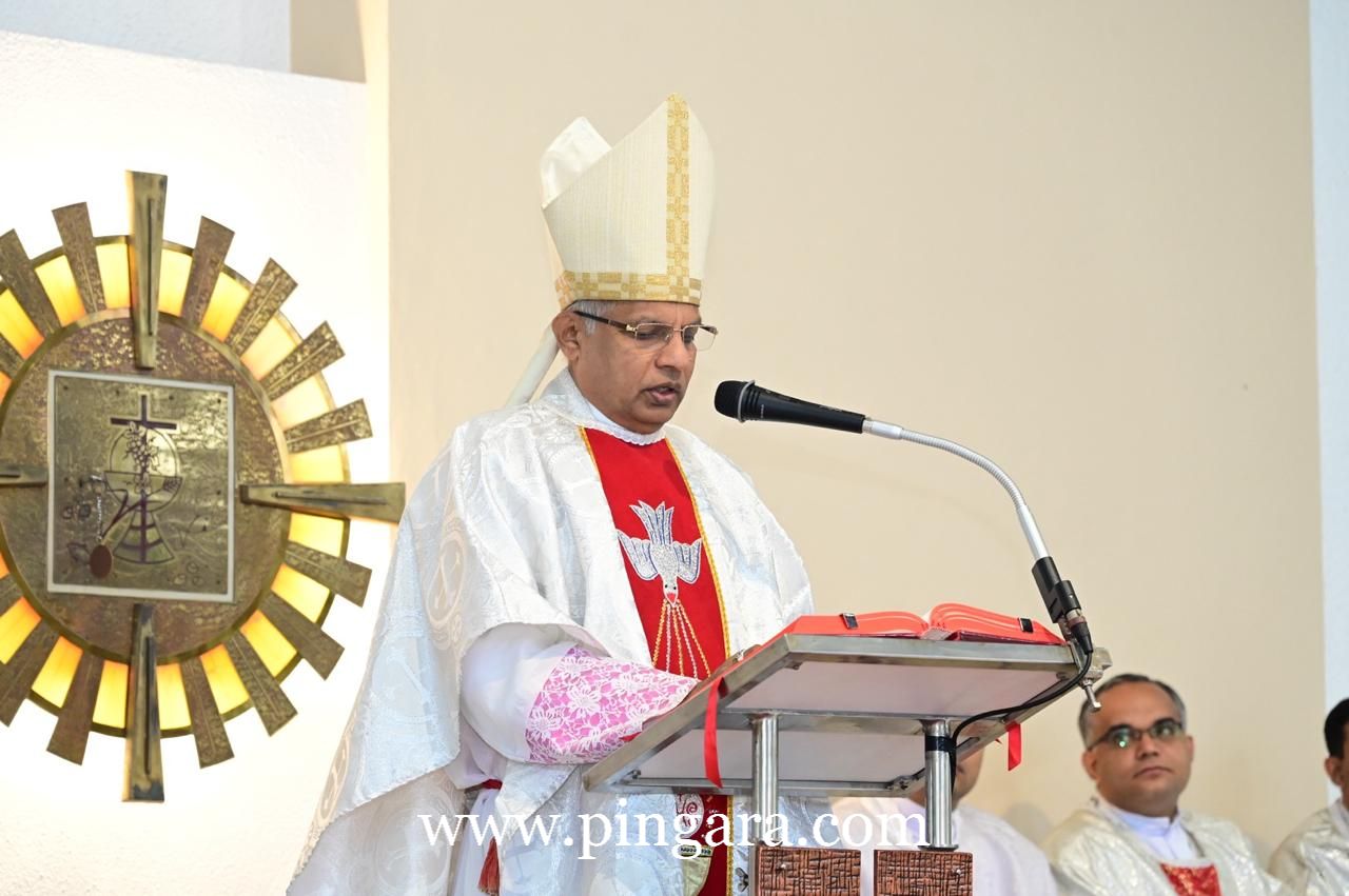 Rooted in the Catholic tradition of the Feast of St Joseph the Worker, the day began with a festal Mass at 7:30 AM in the St Joseph Chapel. Most Rev. Dr Peter Paul Saldanha, Bishop of Mangalore and President of FMCI, was the main celebrant, joined by the priests of the institution’s management in co-celebration. The bishop’s homily reflected on the dignity of labour and the divine calling embedded in honest work. He emphasized the value of working not only for sustenance but for the well-being of one’s family and the betterment of society, drawing inspiration from St Joseph, the humble carpenter and earthly guardian of Jesus.