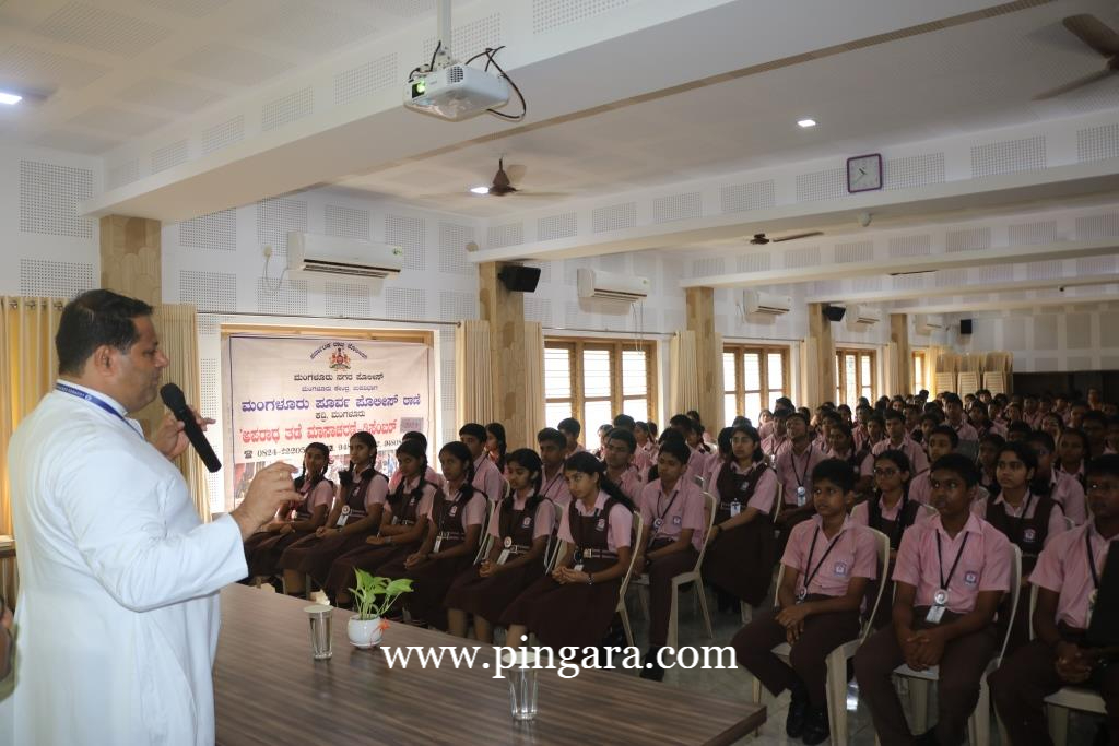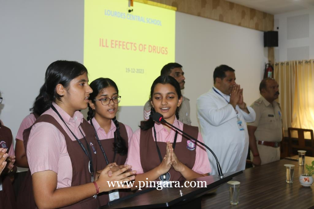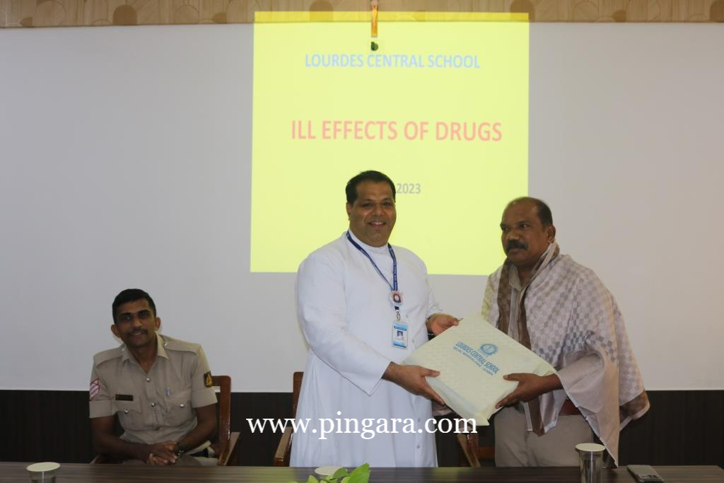 Mangalore: Lourdes Central School organised a Session on the ill effects of drugs for the students of class IX on 19th December 2023 in the A V Room under the guidance of the Principal Rev. Fr Robert DSouza. The programme began at 10.30p.m. with the prayer song sung by the school choir. The dignitaries from Kadri Police Station Yogishwaran, Sub Inspector of Police and Naresh, Beat Officer were given a warm welcome. The Principal honoured Yogishwaran with a shawl.