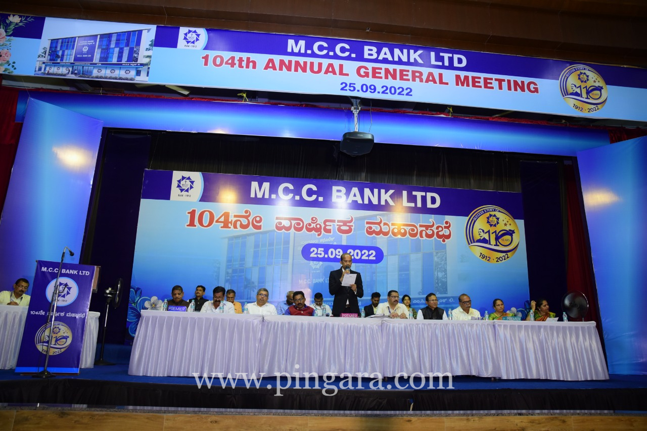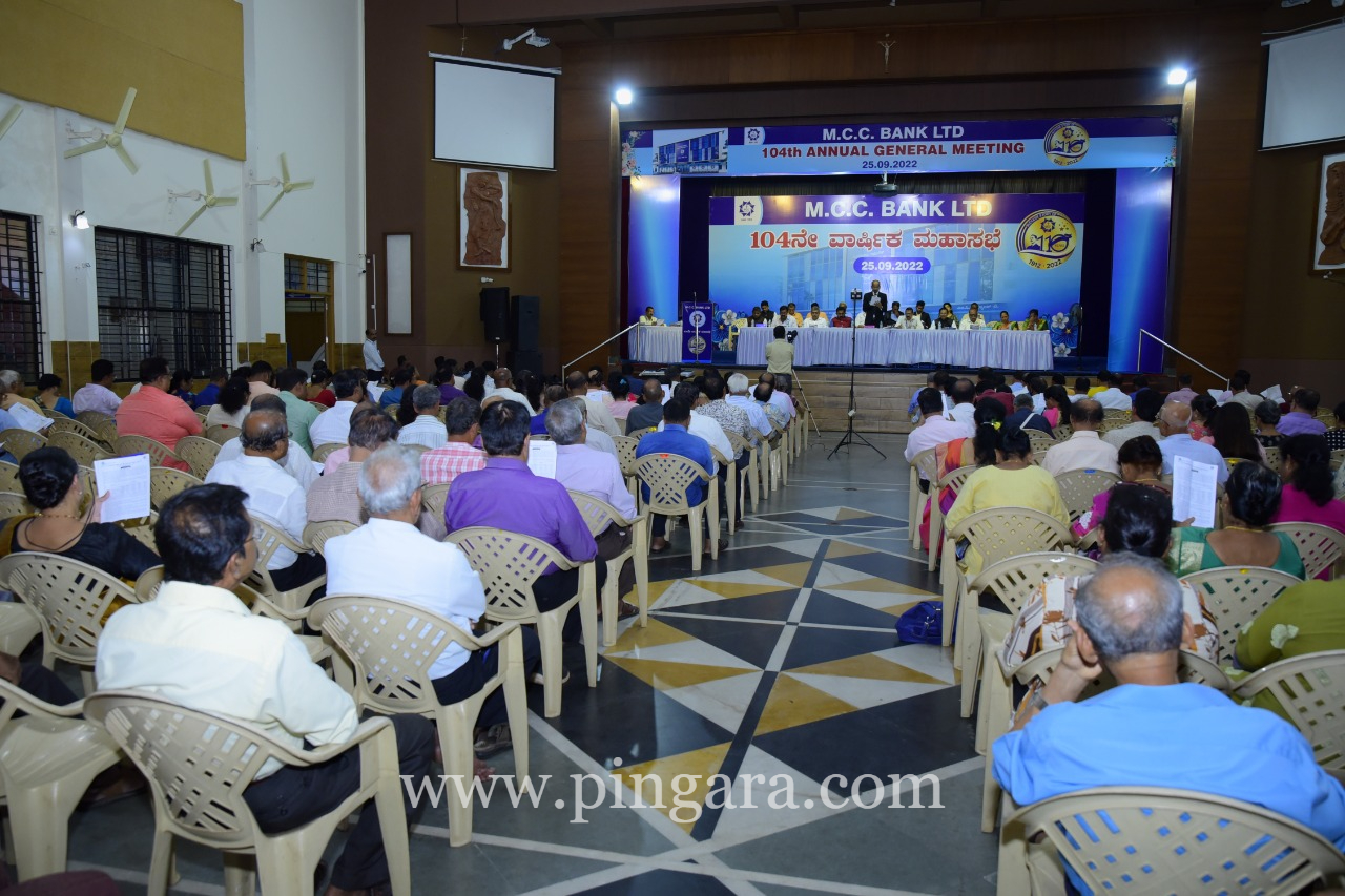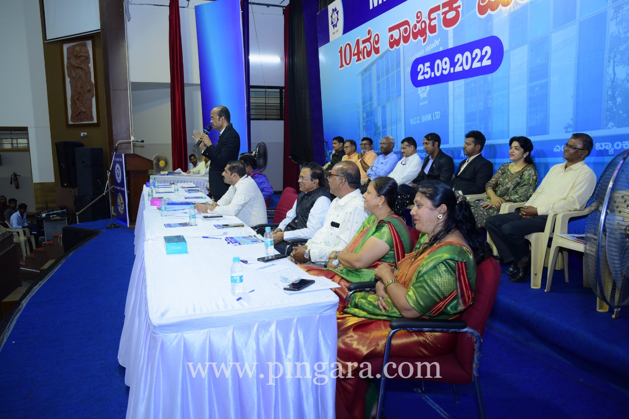 The Bank has convened its 104th Annual General Meeting at Loyola Hall, St Aloysius P.U. College, Kodialbail, Mangalore, on Sunday, the 25th September 2022 at 11 am.
