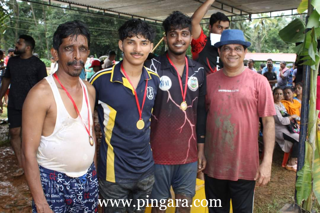 On this occasion, farmer Jude Cornelio, who has been donating grain for the harvest festival for many years, was honored. Many participated in the 'Pepsi Lucky Draw' and won prizes. Lunch was arranged for all attendees. Various competitions were held from 10 AM to 5 PM, and in the evening, prizes were distributed to the winners during the closing ceremony. The dignitaries present were honored with a memento. Manisha D'Souza welcomed everyone, and Alisha Crasta gave the vote of thanks. The event was compered by Santosh D'Costa and Benoy D'Souza. People of all ages, from children to elders, participated in various competitions and enjoyed themselves in the muddy fields.