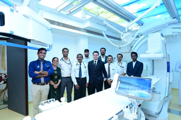 A special note was presented on the Philips AZURION BIPLANE 3.0, highlighting its exceptional features and advanced capabilities. The Philips AZURION BIPLANE 3.0 is a next-generation, dual-arm interventional imaging system offering advanced 2D/3D imaging, Smart CT, and superior neuro-vascular visualisation with low-dose radiation. Its highly flexible geometry provides full-body coverage, faster C-arm positioning and seamless transition between views, making it ideal for complex neuro, vascular, and cardiac interventions. The system features enhanced image clarity, upgraded soft-tissue CBCT, dual-phase cerebral imaging for detecting occlusions, and table-side touchscreen control that improves workflow efficiency. Designed for high-precision, minimally invasive procedures, it increases safety, optimizes procedure time, and supports multi-specialty use. Recognized among the best in its class, this biplane system is the first of its kind in Dakshina Kannada, elevating clinical capabilities and patient care standards in the region and ranks among the best in class across Karnataka, offering upgraded precision, superior imaging quality, and enhanced safety for complex vascular and neuro-interventional procedures.