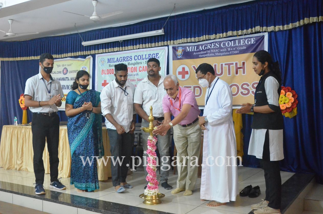 Mangalore: Youth Red Cross and National Service Scheme of Milagres College, Mangaluru in association with Indian Youth Red Cross Society, Dakshina Kannada organised a “Blood Donation Camp” on February 18, 2022. The program was inaugurated by lighting of the lamp by the dignitaries.