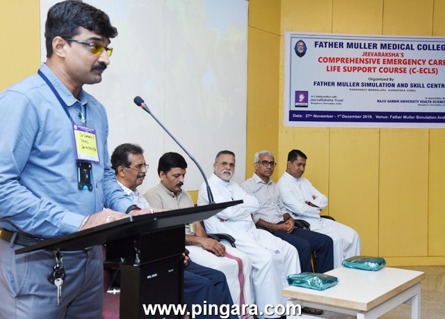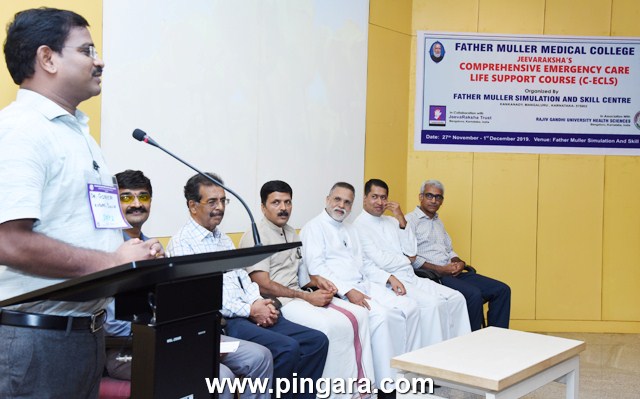 Mangalore: The resourceful, laborious and a successful five day training of trainers C-ECLS workshop organised by the Father Muller Medical College in collaboration with Jeeva Raksha in association with Rajiv Gandhi University of Health Sciences held fat the Knowledge centre hall and skills lab concluded with a valedictory. This workshop was meant for training medical professionals to impart knowledge and skill training to interns on how to assess and manage emergency and life threatening cases quickly and safely, thereafter the transfer of such cases to a higher speciality hospital.