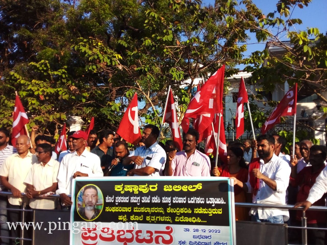 ಸುರತ್ಕಲ್ನ ಕೃಷ್ಣಾಪುರದಲ್ಲಿ ವ್ಯಾಪಾರಿ ಜಲೀಲ್ ಅವರನ್ನು ಕೊಲೆ ನಡೆಸಿದ ಸಂಘ ಪರಿವಾರದವರು ಜಿಲ್ಲೆಯಲ್ಲಿ ಅನೈತಿಕ ಪೋಲೀಸುಗಿರಿ ನಡೆಸುವುದನ್ನು ಪೋಲೀಸರು ನೇರ ಕ್ರಮ ತೆಗೆದುಕೊಳ್ಳುವುದನ್ನು ಕಲಿಯಬೇಕು. ಜಾತ್ಯಾತೀತ ದೇಶದಲ್ಲಿ ಜಾತಿಯ ಆಧಾರದಲ್ಲಿ ಪರಿಹಾರ ನೀಡುವುದನ್ನು ನಿಲ್ಲಿಸಬೇಕು ಎಂದು ಸಿಪಿಐನ ಸೀತಾರಾಮ ಬೇರಿಂಜೆ ಸ್ವಾಗತಿಸುತ್ತ ಹೇಳಿದರು.
