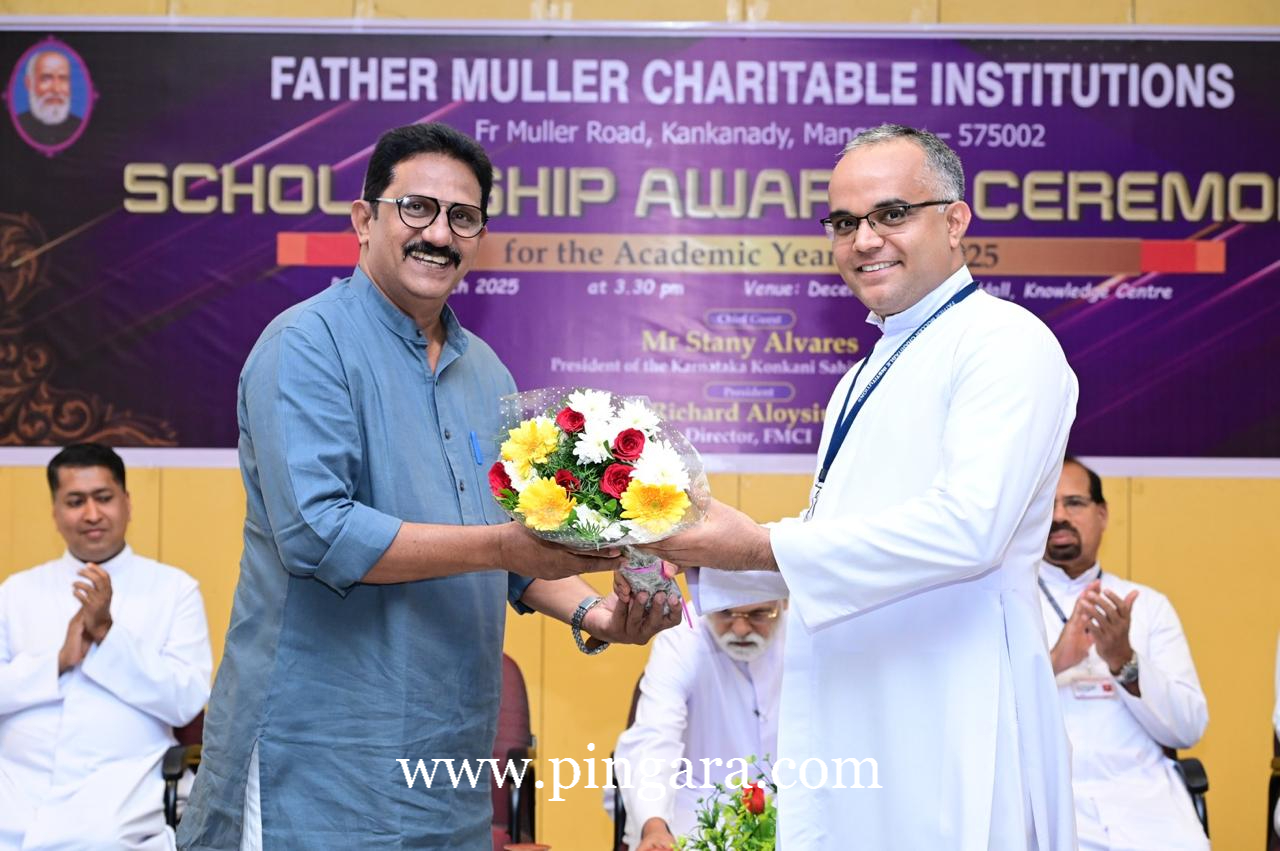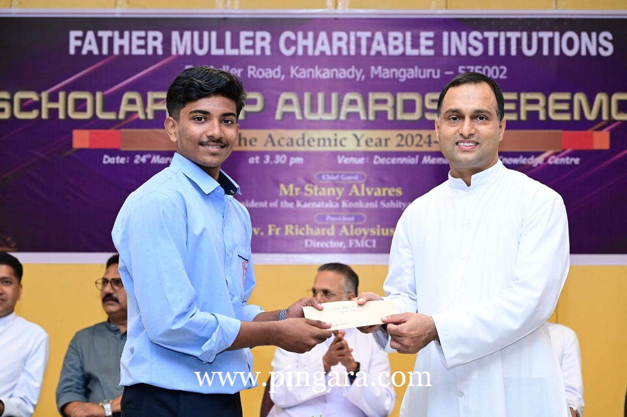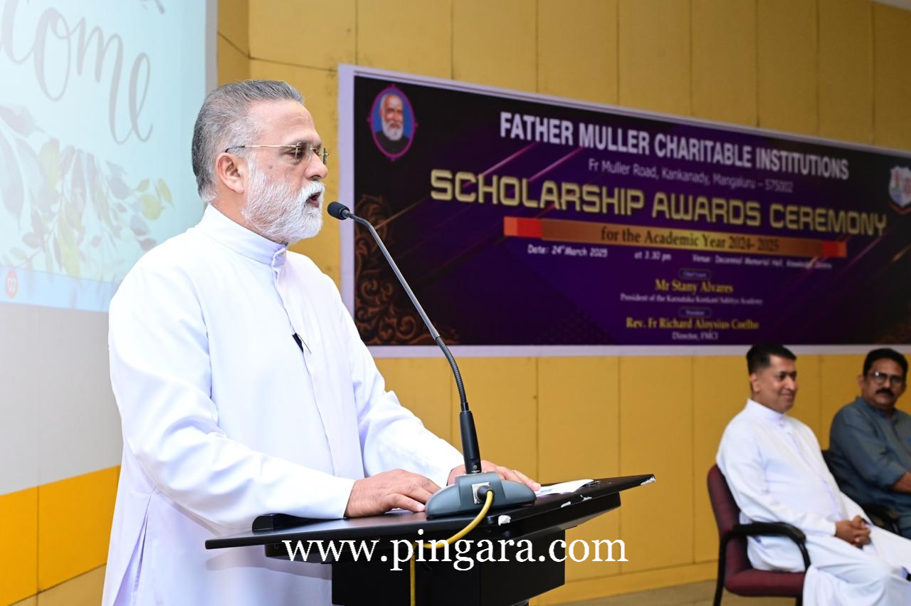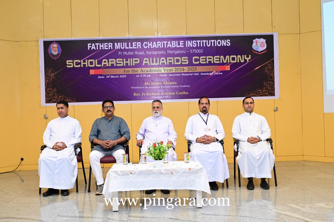 Mangalore: The Father Muller Charitable Institutions (FMCI) held its annual scholarship disbursement to students of merit and low income category on 24 March 2025 in the Decennial Memorial Hall. Stany Alavres, president of the Karnataka Konkani Sahitya Academy was the chief guest and presided over by Rev. Fr Richard Aloysius Coelho Director FMCI. Scholarships amounting to 25 lakhs were provided by FMCI.