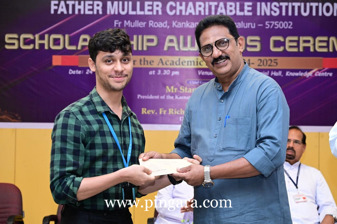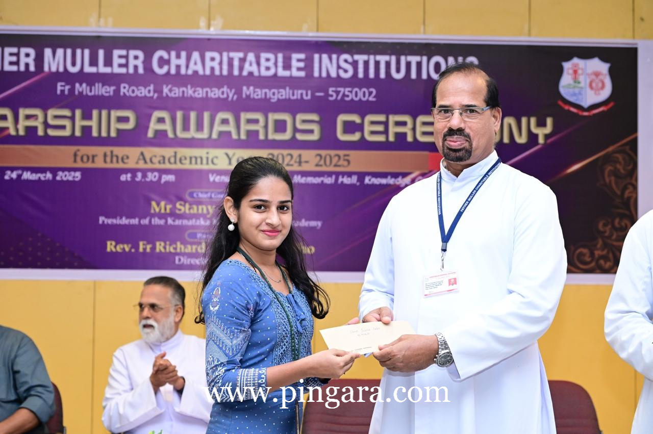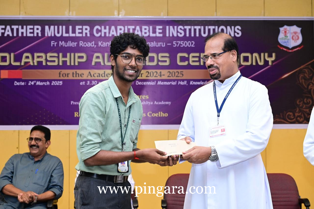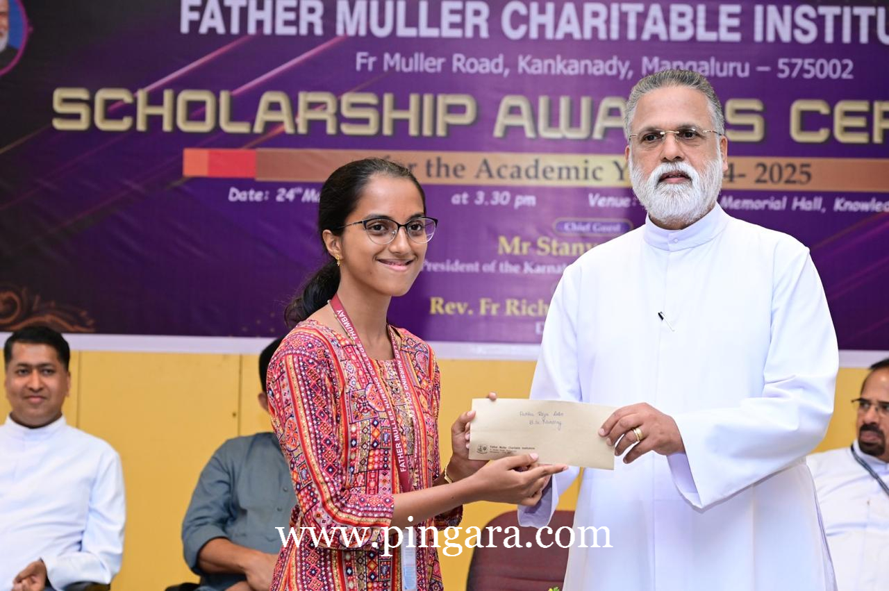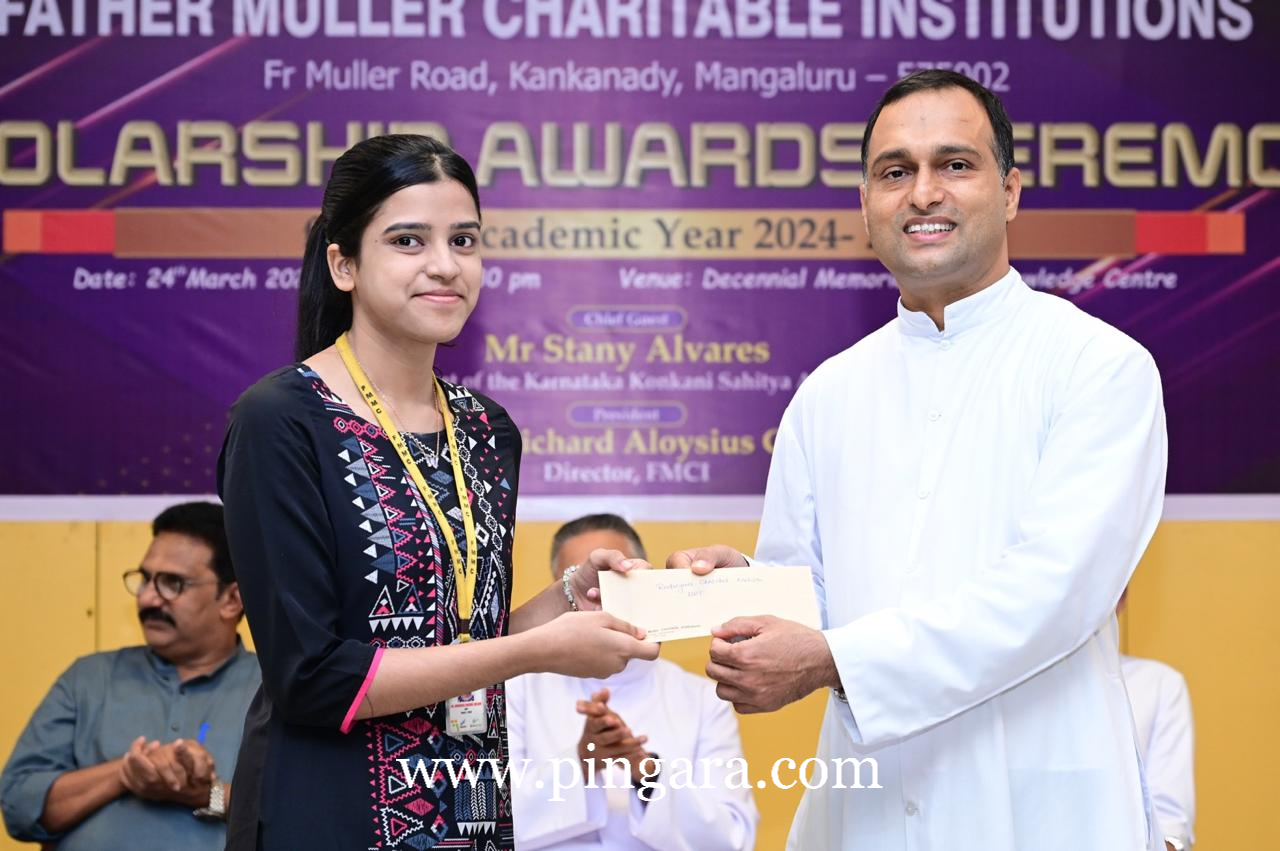 Mangalore: The Father Muller Charitable Institutions (FMCI) held its annual scholarship disbursement to students of merit and low income category on 24 March 2025 in the Decennial Memorial Hall. Stany Alavres, president of the Karnataka Konkani Sahitya Academy was the chief guest and presided over by Rev. Fr Richard Aloysius Coelho Director FMCI. Scholarships amounting to 25 lakhs were provided by FMCI.