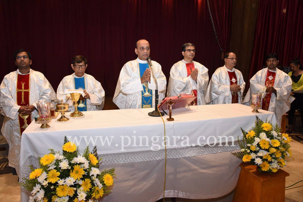 Mangalore: The feast of St Don Bosco, Patron saint of The Konkani Natak Sabha ® Mangalore was celebrated at renovated Don Bosco Hall, Mangalore on 16th February 2022 at 6-30 PM. The celebration began with thanksgiving Eucharistic Mass. PRO of Mangalore Diocese and Parish Priest of Bejai church Rev Fr J.B Saldanha was the Chief Celebrant. Fr Paul Melwyn D’Souza, the President of Konkani Natak Sabha, Fr Fredrick Rodrigues, Fr Francis Fernandes, Fr Steevan Dsouza, Fr Prakash Colaco were the co Celebrants.