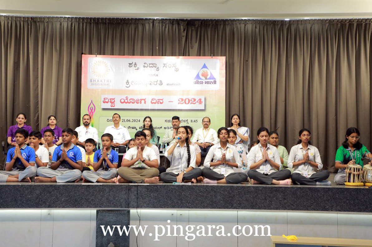Mangalore: Shakthi Residential School, Shakthinagara in collaboration with Kreeda Bharathi Mangalore, celebrated International Yoga Day on June 21st, 2024, with great enthusiasm at Reshma Memorial auditorium.