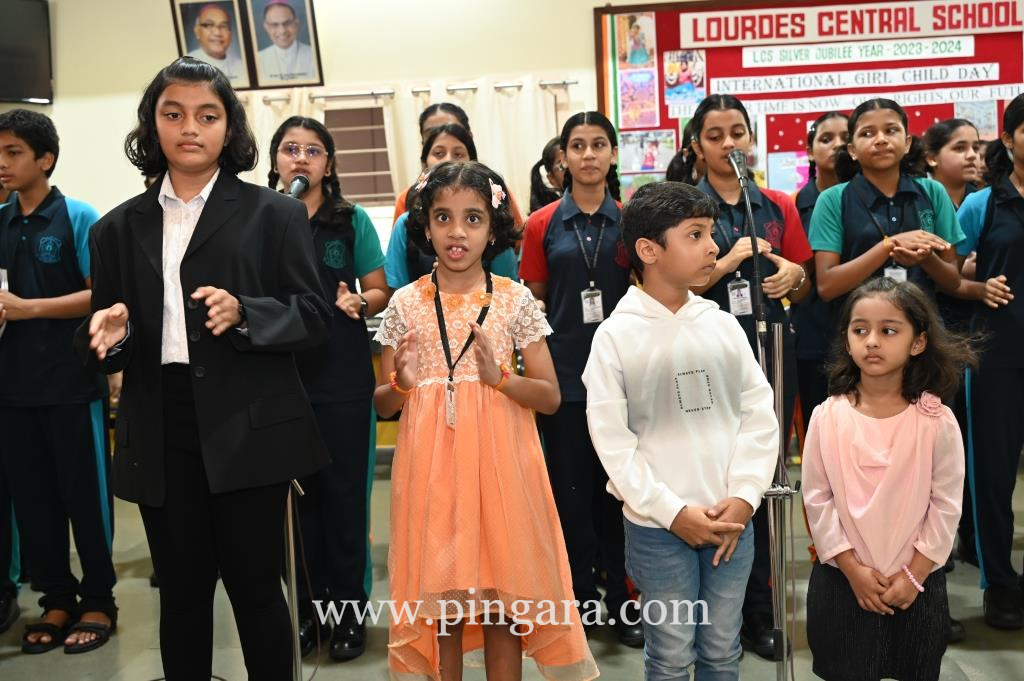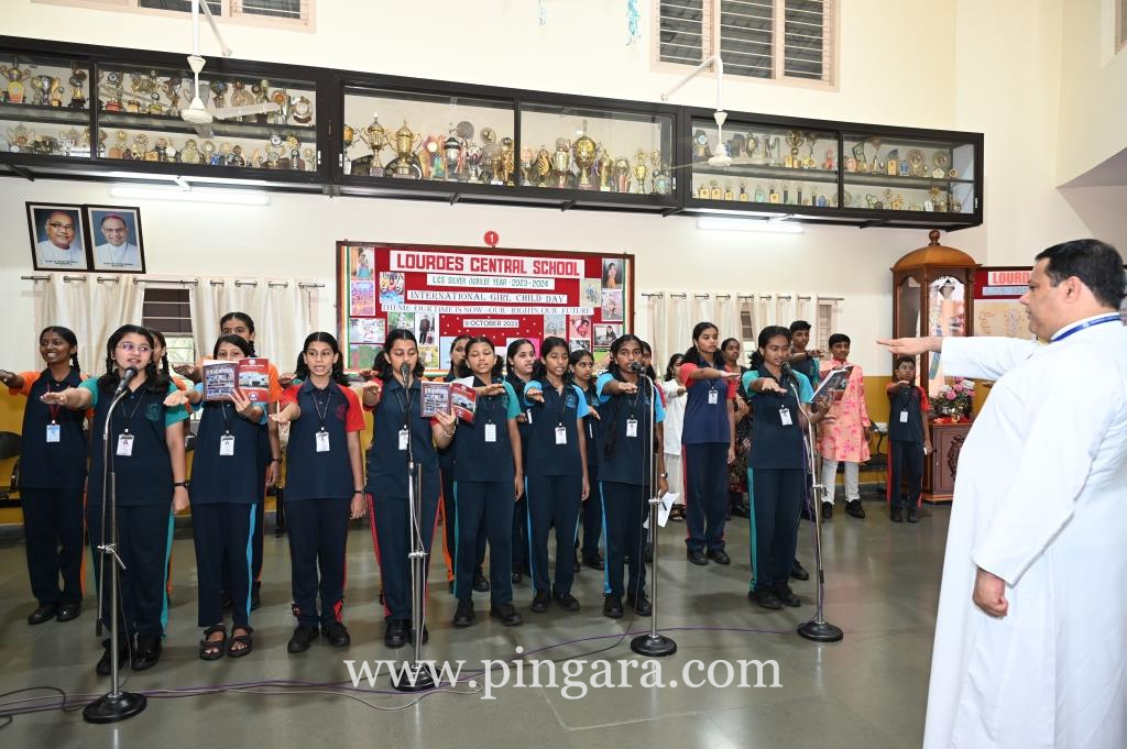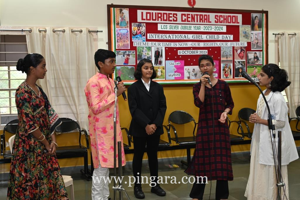 Mangalore: Lourdes Central School celebrated LCS International Girl Child Day 2023 with the theme ‘Our Time Is Now – Our Rights Our Future’ on 11th October during the morning assembly creating awareness about the rights of a girl child, promoting education for girls and respecting them.
