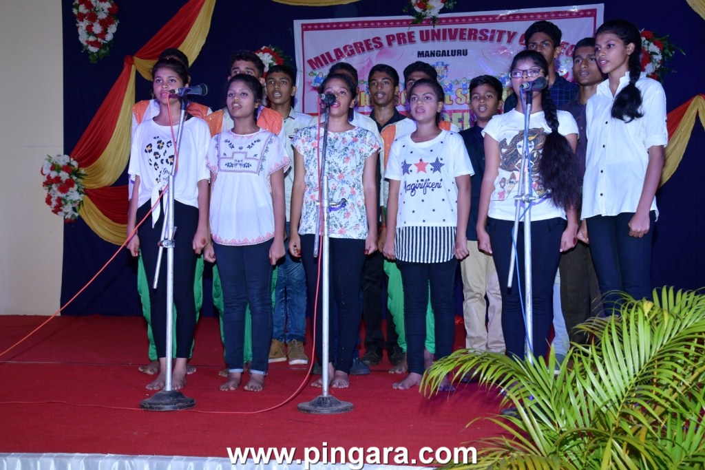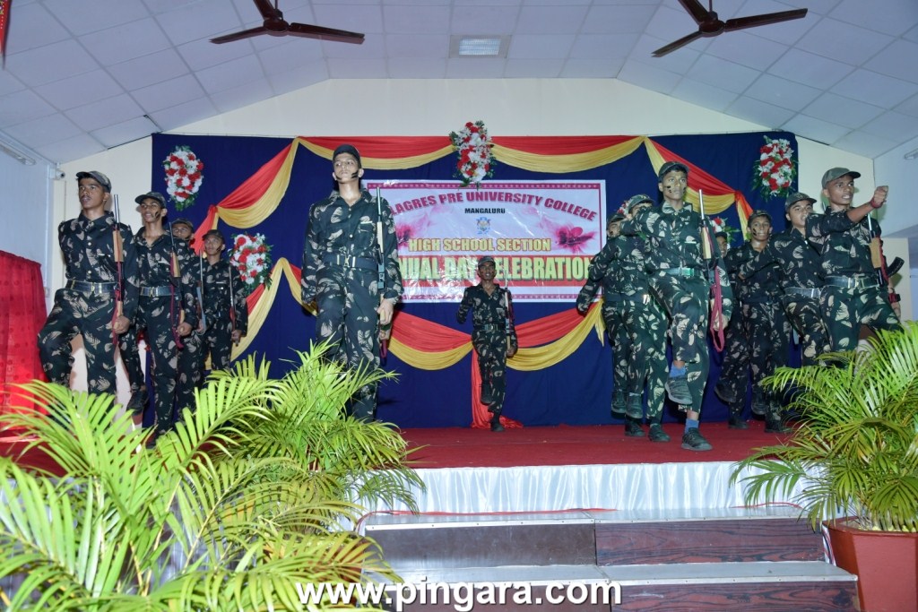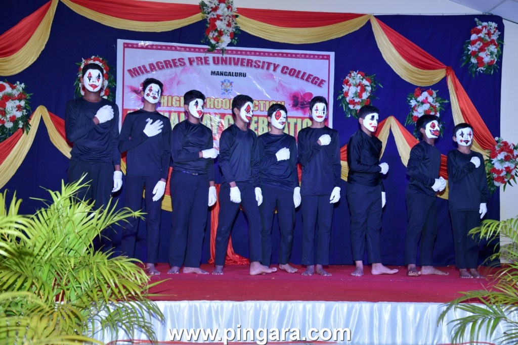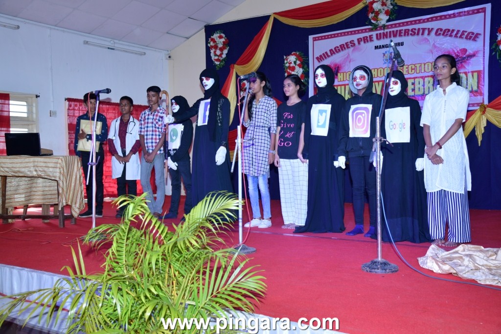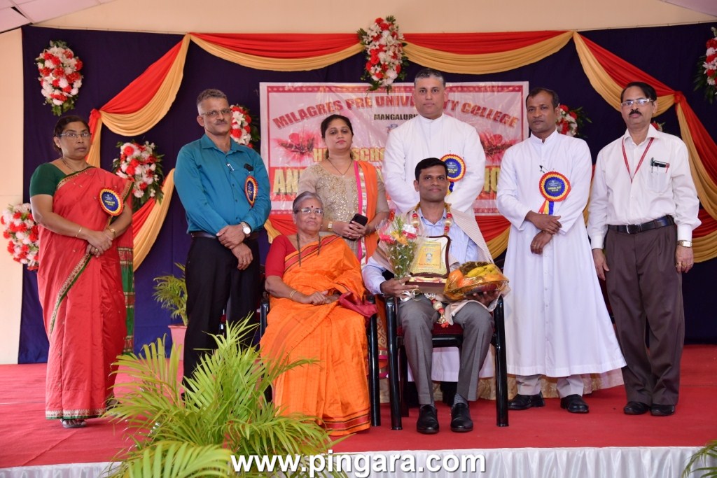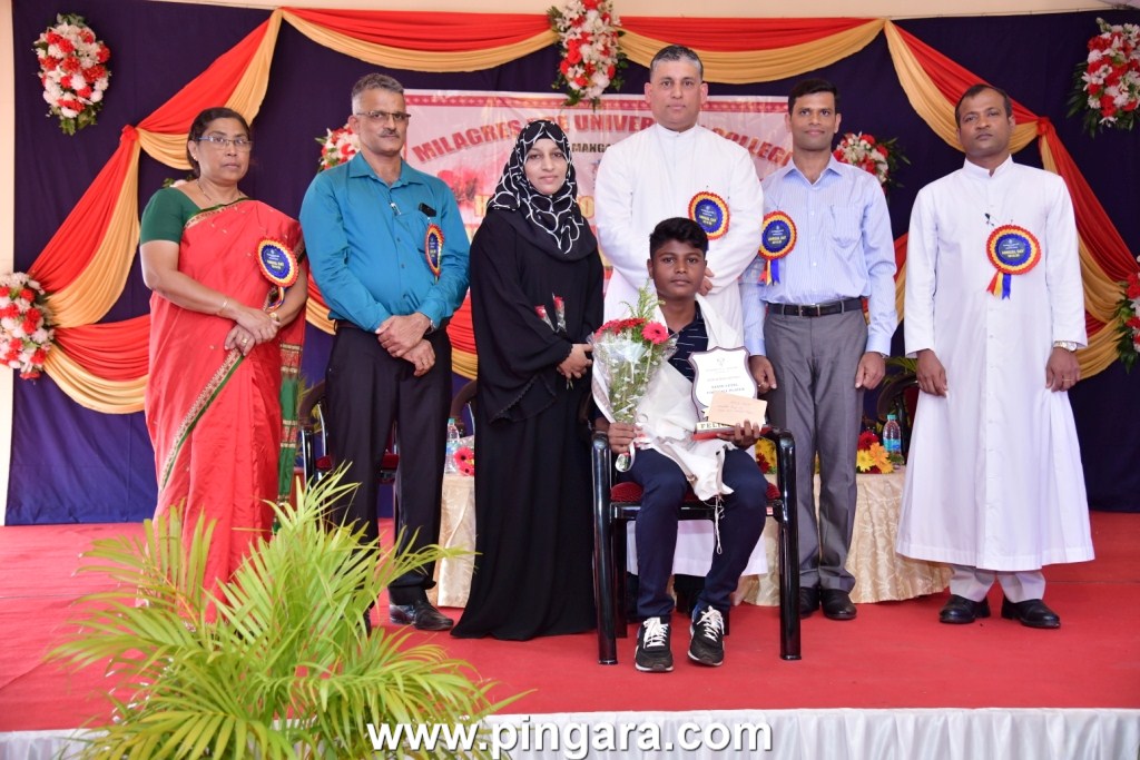 Mangalore: Milagres High School celebrated its Annual Day on 10th December 2019 at the Milagres College Auditorium. Correspondent of the Milagres Educational Institutions Rev Fr Joseph Lobo presided over the programme. Rahul Suvarna, Alumnus, was the Chief Guest and was felicitated during the programme. Stany Baretto, Senior Staff welcomed the gathering.Vice Principal Rev. Fr. Maxy D Souza presented the annual report of the school which highlighted the excellent performance of students in academics and extra curricular activities.The toppers of S.S.L.C. 2019 batch and meritorious student were awarded prizes.The students displayed their talents by presenting cultural events such as dances, skits, mime with patriotic themes. The audience enjoyed the colorful cultural programme presented by the students. The programme concluded with the vote of thanks by Anita Monteiro.