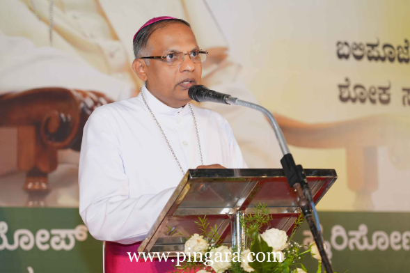 The evening programme included floral tributes, heartfelt condolence messages, and reflections on the Pope’s enduring legacy. Roy Castelino, PRO of the Diocese, welcomed the gathering. Condolence messages were delivered by Rev. Dr J. B. Saldanha, PRO, Mangalore Diocese; Dr D. Jyothi Chelyar, Principal, Government PU College, Chelyar; Dr M. Mohan Alva, Chairman of Alva’s Education Foundation, Moodbidri; Mohammed Monnu, former President of Mangalore Taluk Panchayat and Bishop Peter Paul Saldanha himself.