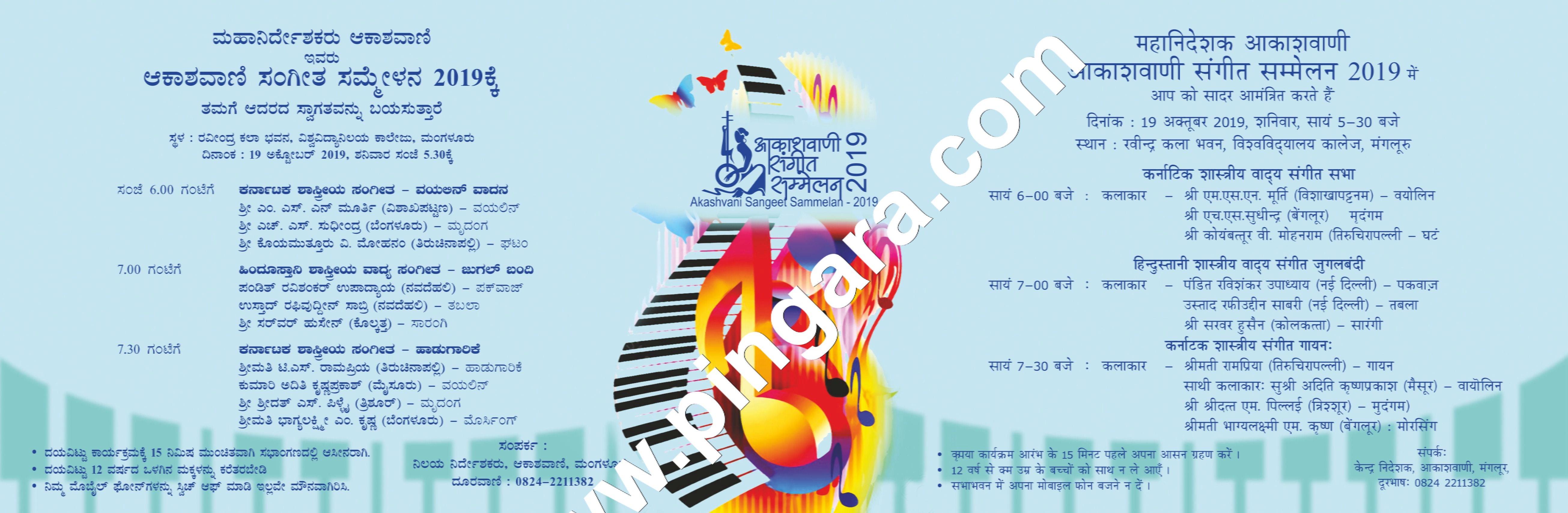 Mangalore: Director General hosts Akashwani Sangeet Sammelan -2019 will be held on 19th oct at Ravindra kala bhavan ,Government University college Mangalore at 5.30 Pm .