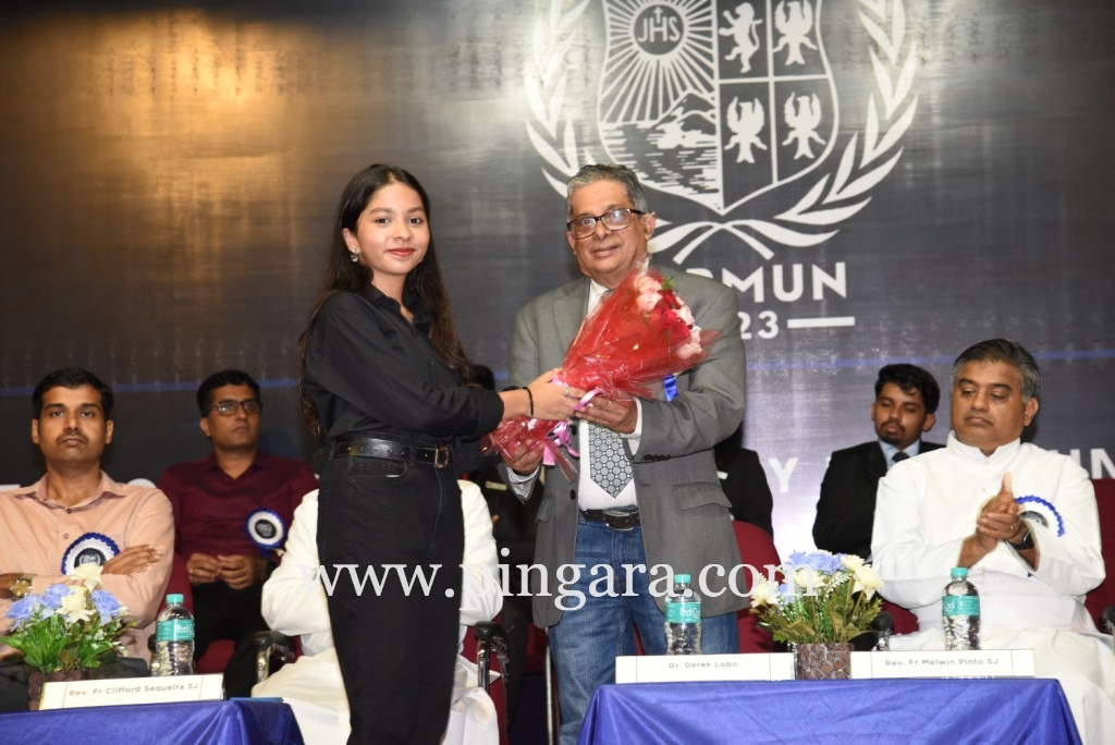 Presiding over the function was the Rector of St Aloysius Institutions, Rev. Fr Melwin Pinto SJ. In his presidential address, he extended a warm welcome and heartfelt gratitude to all the officials of the Model United Nations (MUN) and conveyed his best wishes to the delegates. He emphasized the importance of collaborative learning, highlighting that as a team, they would acquire new knowledge and collectively seek solutions to global issues. He also pointed out the multitude of dedicated units within the United Nations (UN) that work tirelessly for the betterment of the world.