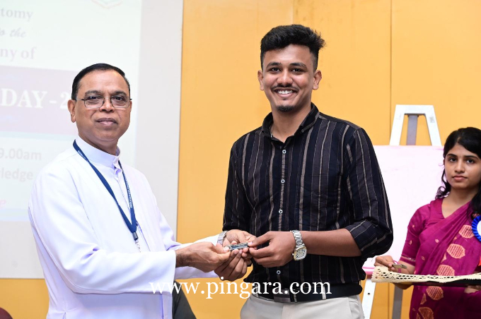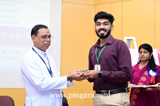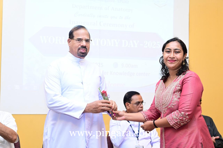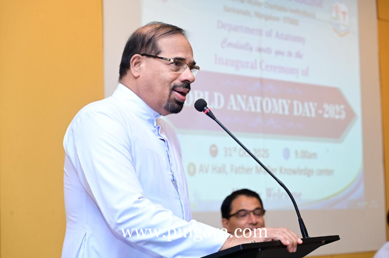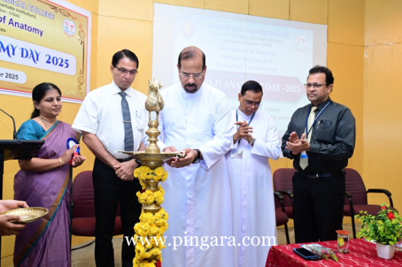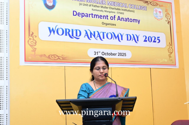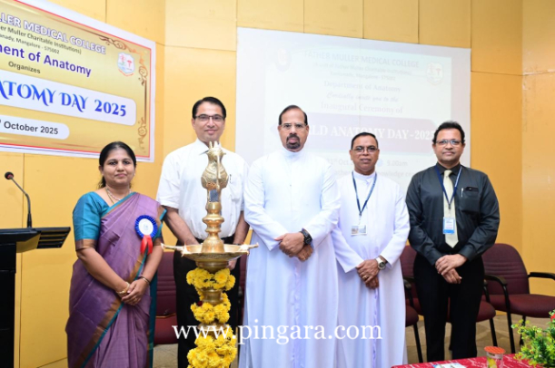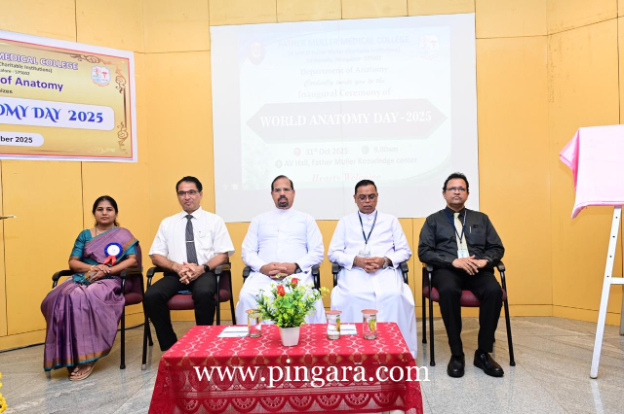 Mangaluru: Department of Anatomy at Father Muller Medical College Celebrated World Anatomy Day on 31st October 2025. The Inaugural ceremony of the event was held at Knowledge Centre Hall, Central Library Building of FMCI. The program began with a prayer setting a reverent tone for the day. The director of FMCI Rev. Fr Faustine Lucas Lobo presided over the function. Other dignitaries on the dias were the Administrator of Father Muller Medical College, Rev. Dr. Michael Santhumayor, Dean of FMMC Dr Antony Sylvan Dsouza, Vice Dean of FMMC Dr. Venkatesha BM and Head of the Department of Anatomy Dr Varsha Shenoy.