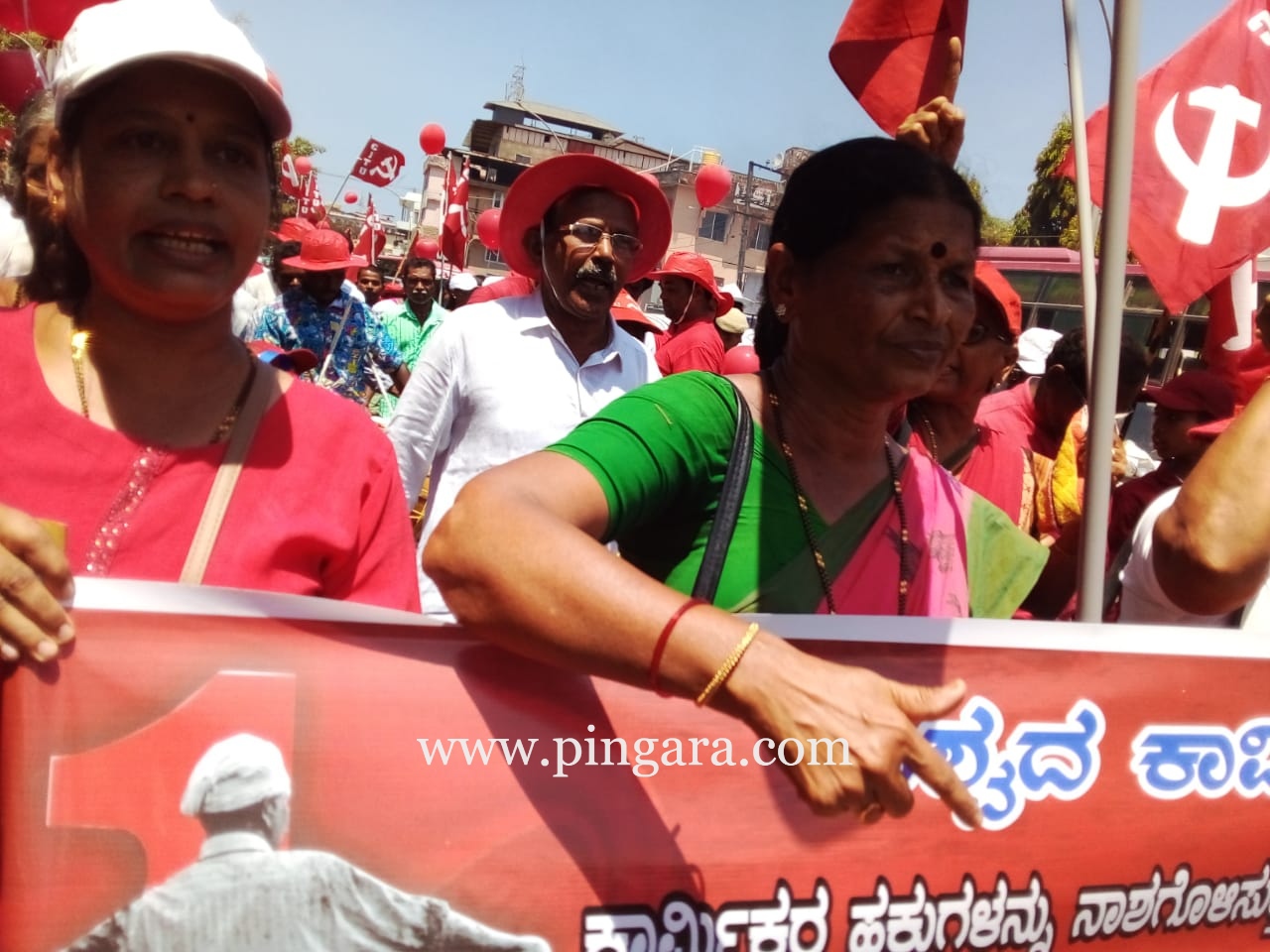 ಕೋಮುವಾದ, ಕಾರ್ಪೊರೇಟ್ ಸಂಸ್ಥೆಗಳ ಅಕ್ರಮ ಕೂಟಗಳ ಹುನ್ನಾರ, ರಾಜ್ಯ ಸರಕಾರವು ಕೆಲಸದ ಅವಧಿ 12 ಗಂಟೆಗೇರಿಸಿದ್ದರ ವಿರುದ್ಧ ಮತ್ತು ಕಾರ್ಮಿಕರ ಕಲ್ಯಾಣದ ಪರ ಘೋಷಣೆಗಳು ಮೊಳಗಿದವು.