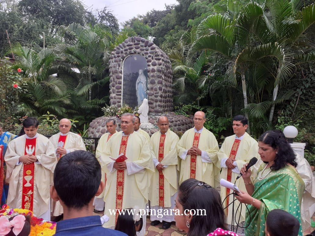 The main celebrant of the Eucharistic celebration was Fr. Naveen Rebello SVD with Fr. Francline Machado SVD, Fr. Sunil Ranger SJ of De Nobili College (DNC – Pune) giving the Homily, Fr. Lancy Monteiro SJ of DNC, Fr. Woolsie SJ of DNC, Fr. Claudius Tauro SJ of Jnana Deepa Institute (previously JDV – Pune), Fr. Ivan D’Souza SJ,Fr. Jossy Lobo SJ, Fr. Peter Colaco as concelebrants.