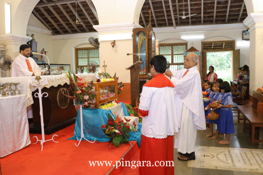 Holy Eucharist celebrated by Fr. Victor Dsouza and Novena conducted by Fr. William Menezes Parish Priest. Children took active part in novena by brining flowers and offering to Infant Mary and all the devotees were present.