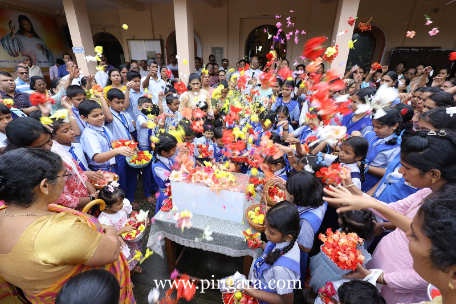 Omzoor, Mangalore: Sixth Day of Novena began with showering flowers on infant Mary at Holy Family Church.