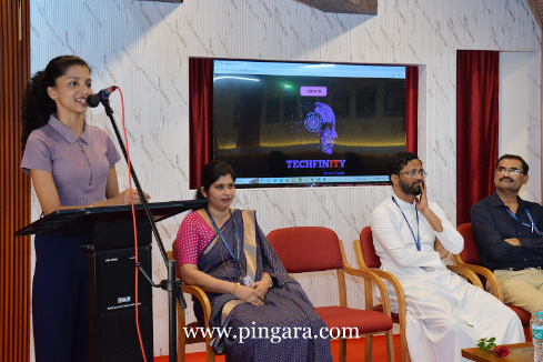 Ananya and her group from the first-year MCA class led the prayer. Harinakshi, President of the ‘Techfinity’ Tech Club, extended a warm welcome. Pooja N., Secretary of the club, outlined the various activities planned for the current academic year. Shilpa Rai M. of second-year MCA proposed the vote of thanks, and Chaitanya K. compered the event. On the dais were Dr Vinayachandra, Dean of the Computer Applications and Akshata B., Director of the ‘Techfinity’ Tech Club.