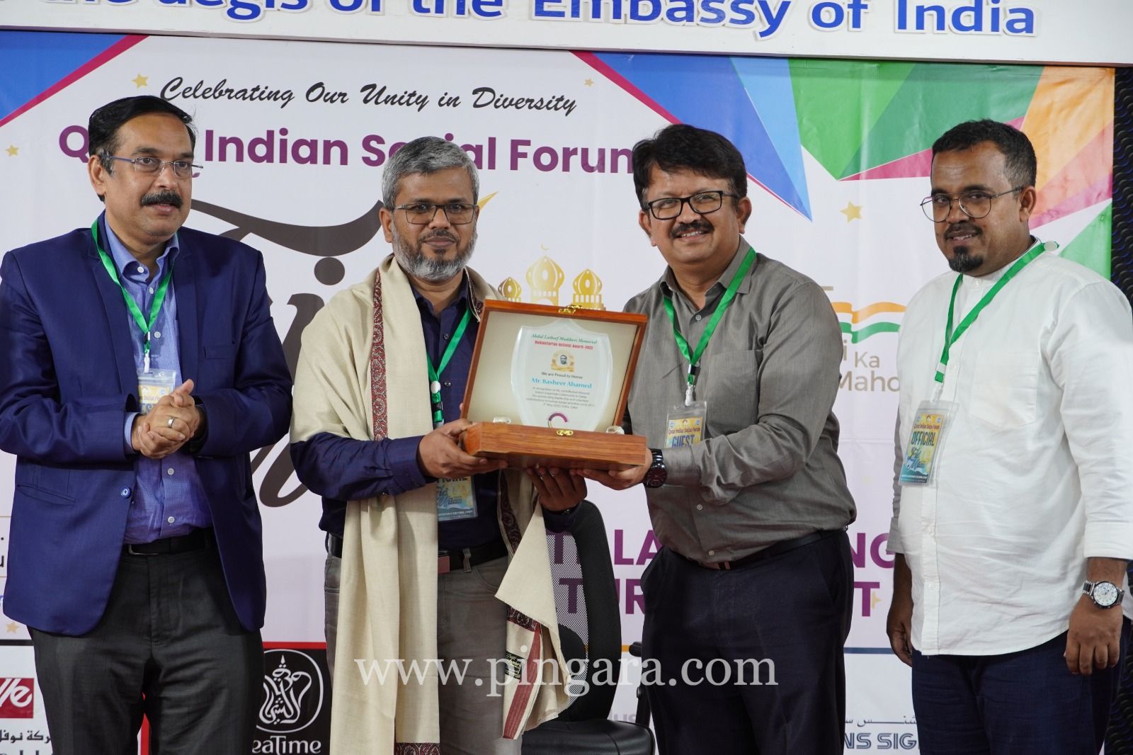 Chief Guest of the Evening Subramanya Hebbagelu, Vice President Indian Cultural Center, handed over the “Abdul Latheef Madikkeri Memorial Humanitarian Activist Award” for 2022 to Basheer Ahamed, Leader from Social Forum Tamilnadu, and paid tribute the veteran Leader Abdul Latheef Madikeri, who passed away April Last year, in his speech stressed the importance of Serving Humanity.