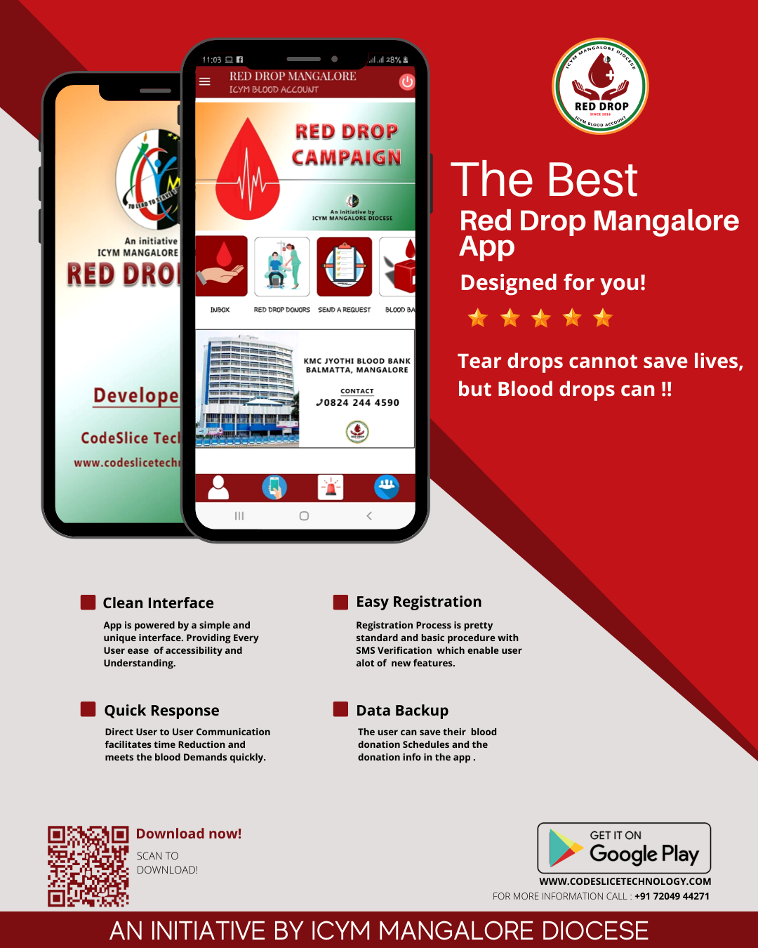 Red Drop Mangalore is a project of the ICYM Mangalore diocese. Director Fr Ashwin Cardoza, President Leon Saldanha, Secretary Veena Vas, PRO Minol Braggs and Praveen Crasta are in the team which is doing commendable work for this project.