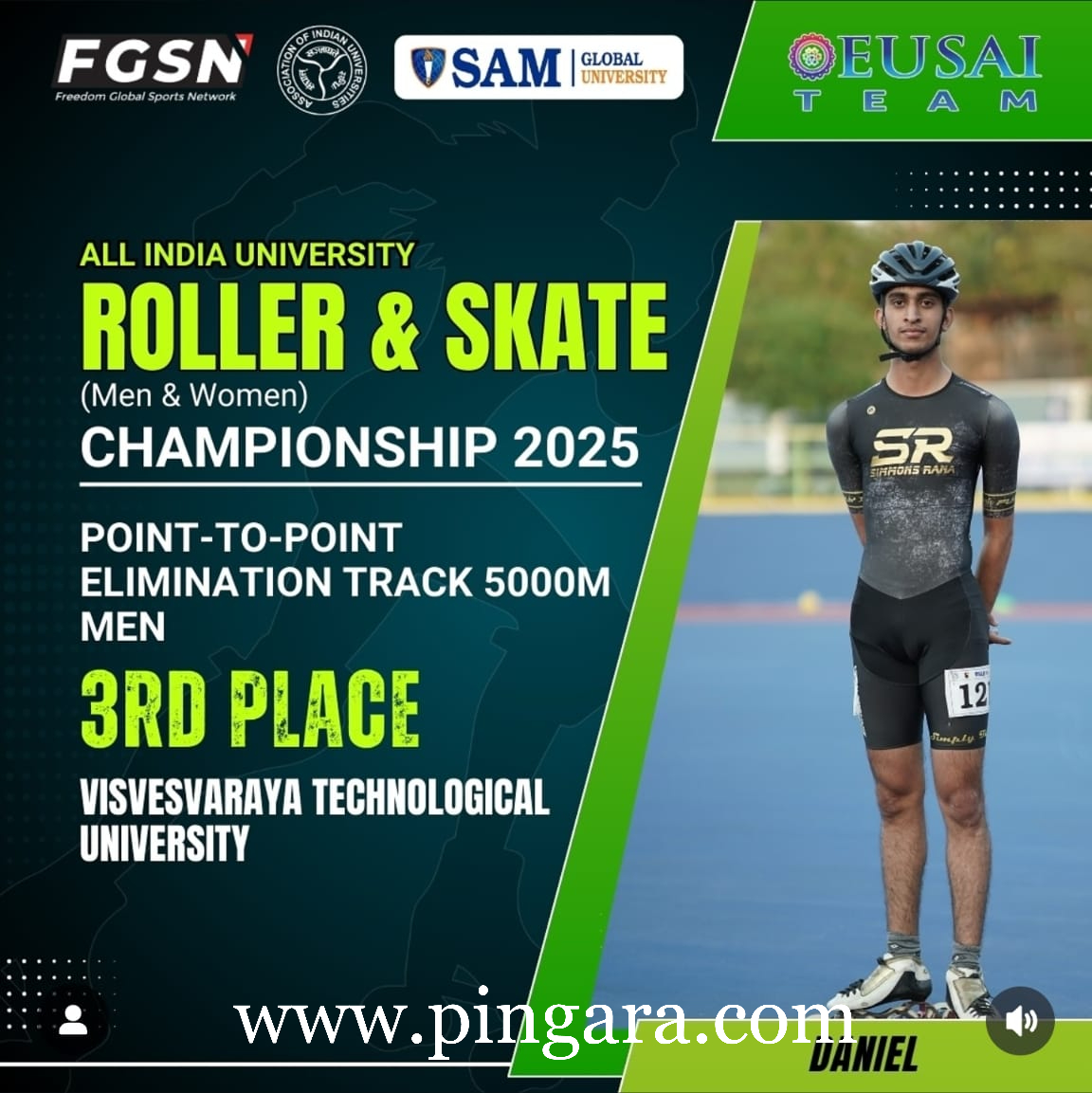Vaneesha V Rodrigues and Assistant PED, Sudheer M. Daniel, 3rd year CSE student, secured 3rd place in 5000mts point to point and 3rd place in 10000mts elimination in all India Inter University Roller Skates Championship held at Sam Global University Bhopal (MP) from 24 to 26 March 2025. The Management of SJEC congratulates Daniel and the Physical Education Directors for this overwhelming achievement.