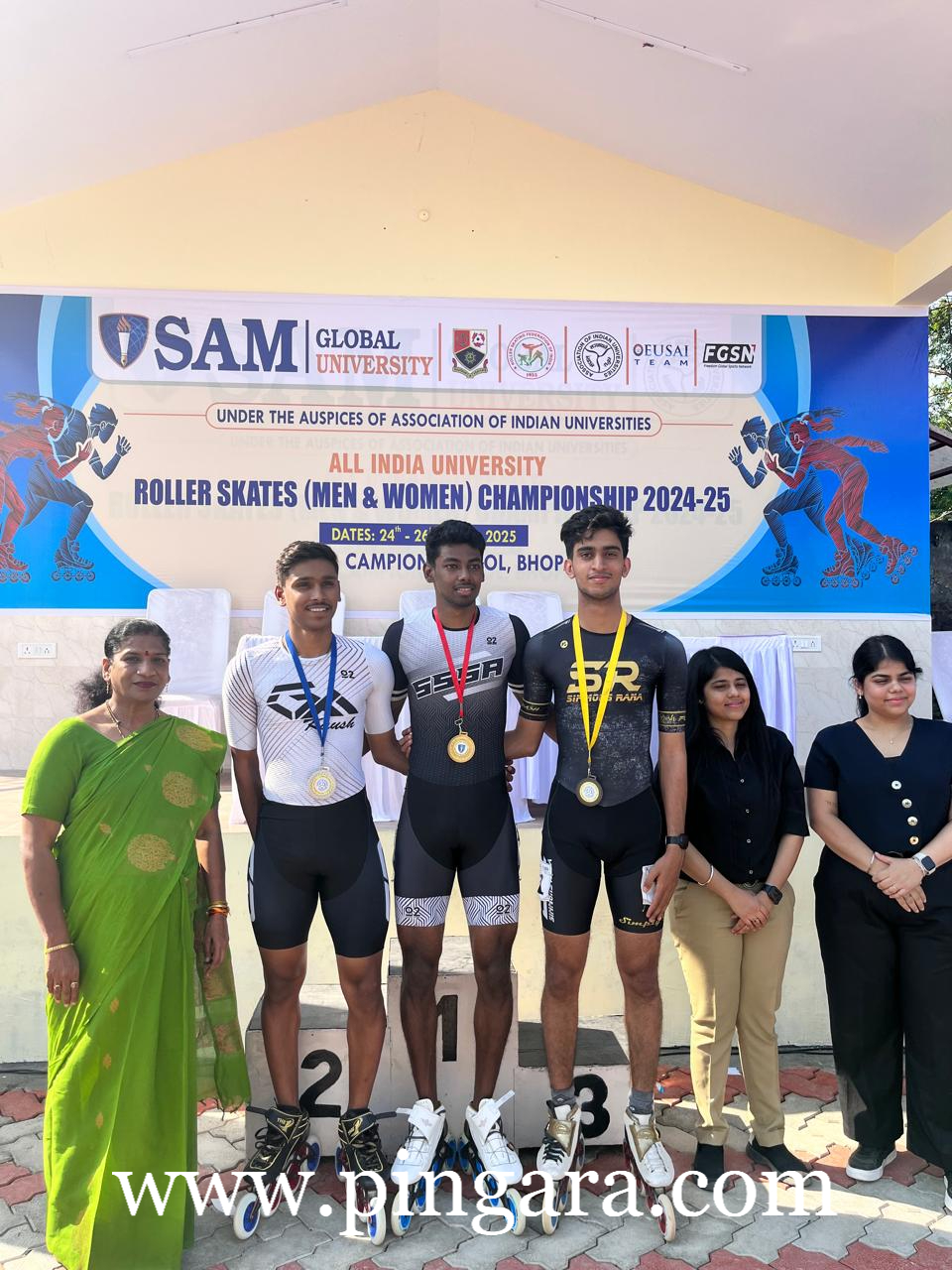 Mangalore. April 01:St. Joseph Engineering College (SJEC) Men’s Skating team has secured various trophies in all India Inter University Roller Skates Championship held at Sam Global University Bhopal (MP) from 24 to 26 March 2025 under the guidance of Physical Education Director (PED).