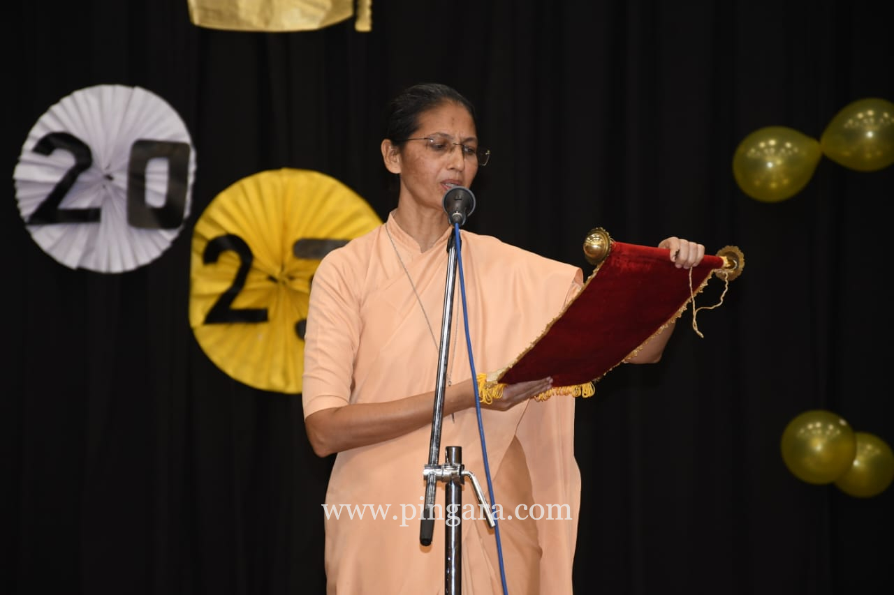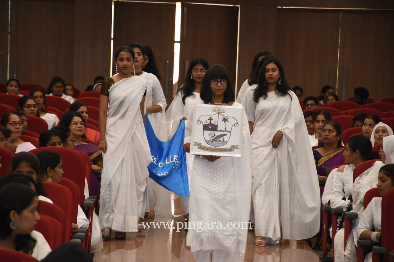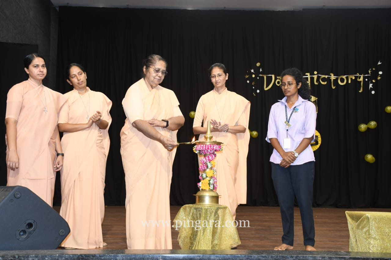 The theme of the programme was "Change takes Courage." The programme included a prayer song, welcome dance, Group Dance and a farewell song, all of which emphasized the need to use their learning and skills for the benefit of humanity and to be responsible for the success of a major change, where courage is essential. The highlight of the programme was the Principal-Sr Venissa's message where she urged the students to adhere to the principles inculcated by them in the college. She prayed for their wellbeing and wished for them a fruitful future. She ended by emphasizing the need to give to society and quoted from the scriptures to convey the same.
