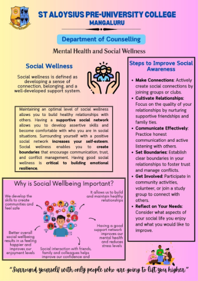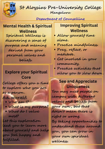 Mangalore: The Department of Counselling at St Aloysius Pre-University College successfully organized the Mental Health Week. The week-long initiative focused on promoting mental well-being, reducing stigma, and creating a supportive environment for students, faculty, and staff.