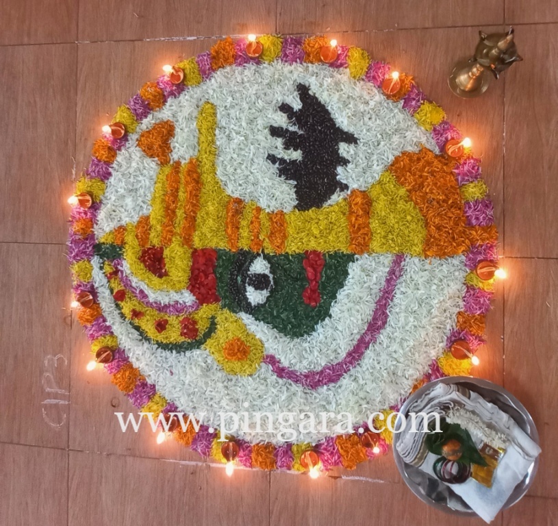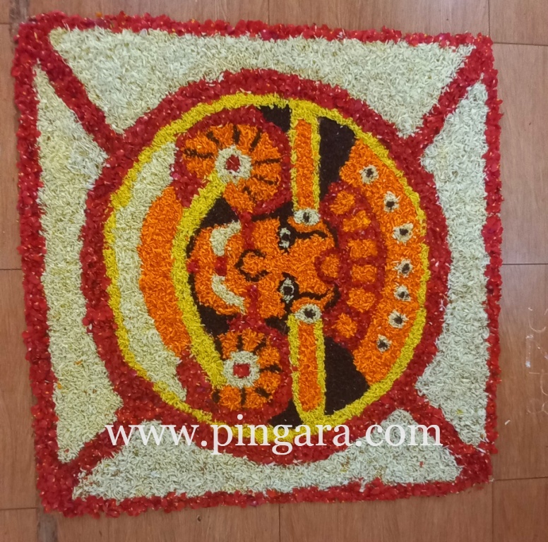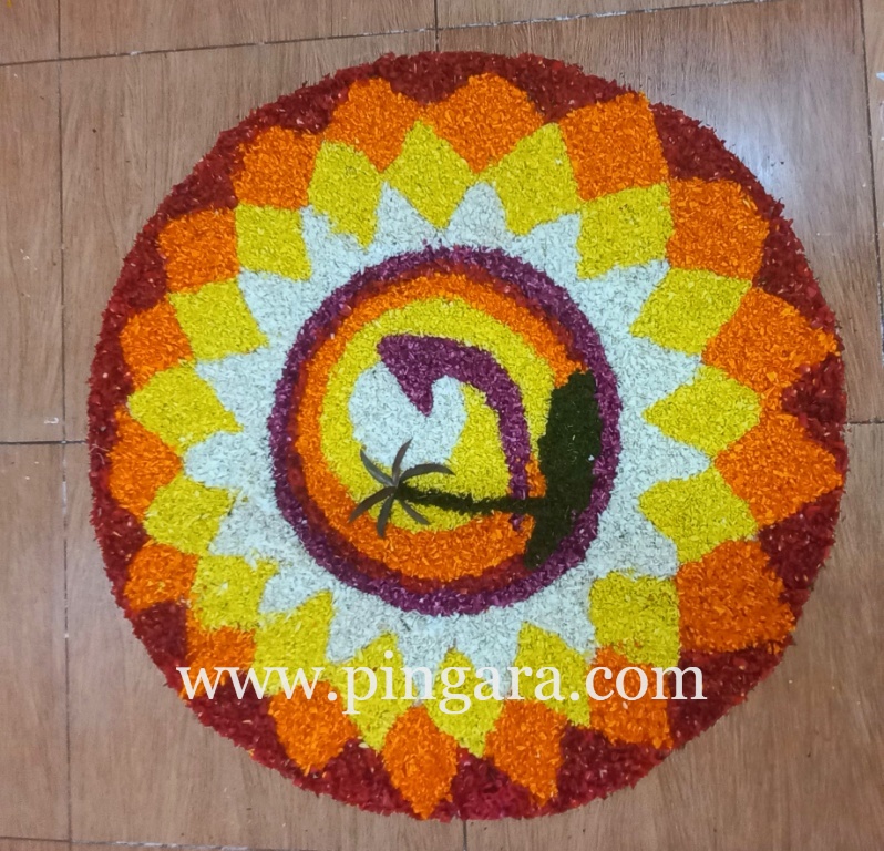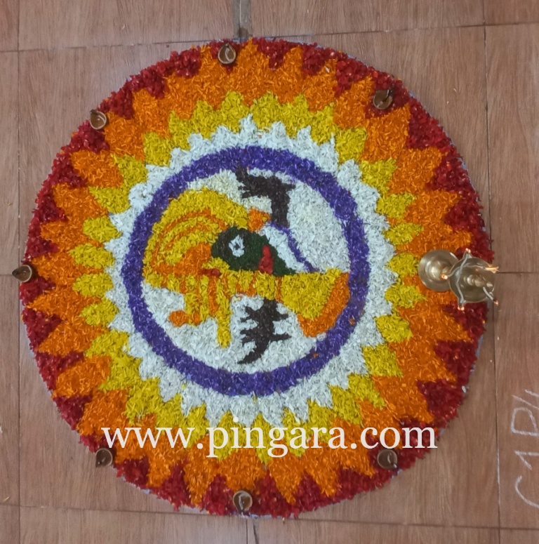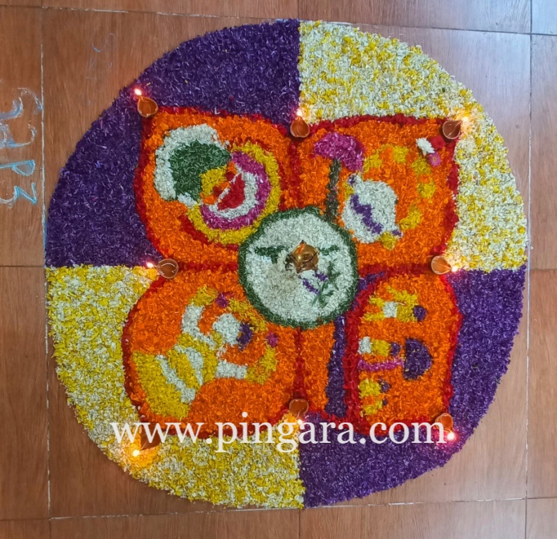 The air was filled with the sweet fragrance of flowers as marigolds, roses, chrysanthemums, and dahlias were meticulously arranged to form breathtaking patterns. The Pookalam was a blend of tradition and innovation, incorporating modern elements while staying true to the traditional aesthetics of Pookalam.