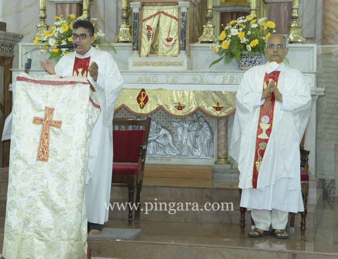 Mangalore: Rev. Fr Anil Alfred D’Souza of Family Life Centre of the Diocese of Mangalore offered the Holy Mass on the ninth day of the novena and preached a homily. He called on the congregation to pray for the couples. In today’s society we see the couple for silly reason go for divorce. Marriage is reduced to just a contract. In olden days the couple used to adjust and put on even if there were lot of difficulties and hurdles in their life. We could see couple living together for decades. Though there were financial difficulties there was peace and happiness in the family. Fr D’Souza said let the couples be seen in today’s society who live such committed life. Let us pray for them, he said.