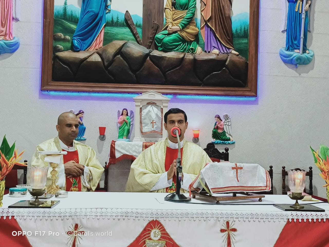 Mangalore: Rev. Fr Ashwin Crasta the Asst Parish Priest of St Sebastian Church Bendur offered the Holy Mass and preached a homily at St Anthony’s Ashram Jeppu on the seventh day of novena. The theme of the day was: praying for the hungry. Jesus during His public ministry fed thousands by performing a miracle. St Anthony the great intercessor obtains favors for his devotees. The devotees when they receive favors donate to ‘St Anthony’s Bread’ which in turn utilizes the resources to feed the hungry. Today due to ‘Covid 19’ there are millions who go hungry.