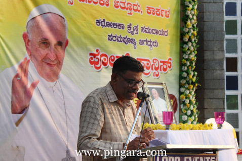 Uday Kumar Shetty Muniyal, a leader of the Congress party, gave a short and touching speech in the Tulu language, saying that one could understand the simplicity of Pope Francis just by looking at his photograph.