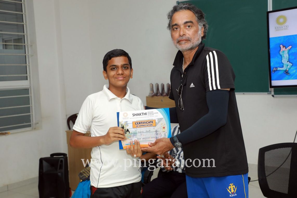 The programme began with an invocation and Reading of the report by Sharanappa, Kannada teacher. Budding Cricketers shared theirexperiences.26 campers were felicitated with the Certificates. Parents of these young kids too shared their delight. Samuel Jayraj, Rajesh Shetty and Satya Swaroop headed the cricket coaching. Ramesh K, Chief Advisor of Shakthi Education Trust, Prakyath Rai Institute Development Officer, Surekha Physical Education teacher were present on thisoccasion.