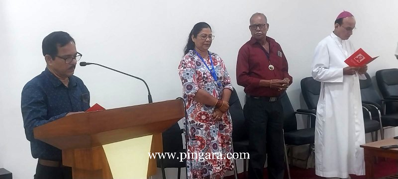 Newly elected president Bro. Vincent Lewis took oath from Bishop Gerald Isaac Lobo with the witness of all present during the election process.