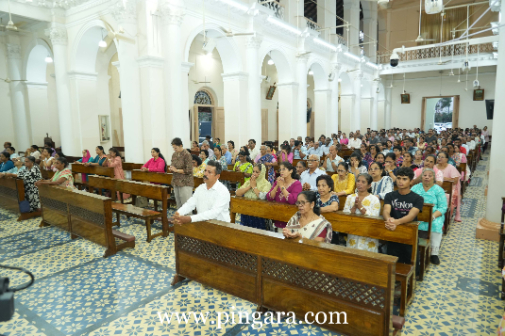 Upon the conclusion of the Mass, Fr. Nishanth Vivian Rodrigues presided over the novena, imparting blessings upon the faithful with the sacred relics. The liturgy was beautifully accompanied by the hymns of the Urwa parish choir.