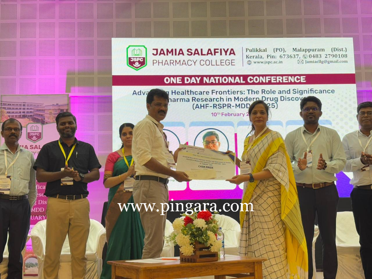 ಮಂಗಳೂರು, ಫೆ. 11: ನಗರದ ವಿಶ್ವವಿದ್ಯಾಲಯ ಕಾಲೇಜಿನ ಸಸ್ಯಶಾಸ್ತ್ರ ವಿಭಾಗದ ಡಾ. ಸಿದ್ದರಾಜು ಎಂ.ಎನ್. ಅವರಿಗೆ ಕೇರಳದ ಜಾಸ್ಮಿಯಾ ಸಲಾಫಿಯಾ ಫಾರ್ಮಸಿ ಕಾಲೇಜಿನಲ್ಲಿ ಫಾರ್ಮಿಸಿ ಮತ್ತು ಆರೋಗ್ಯ ವಿಜ್ಞಾನ ವಿಭಾಗಗಳ ವತಿಯಿಂದ ಏರ್ಪಡಿಸಿದ್ದ ಒಂದು ದಿನದ ರಾಷ್ಟ್ರೀಯ ಸಮ್ಮೇಳನದಲ್ಲಿ ಮಂಡಿಸಿದ ಸಂಶೋಧನಾ ಪ್ರಬಂಧಕ್ಕೆ ಉತ್ತಮ ಸಂಶೋಧನಾ ಪ್ರಬಂಧ ಮಂಡನೆ ಪ್ರಶಸ್ತಿ ಪಡೆದಿದ್ದಾರೆ ಎಂದು ಪ್ರಕಟಣೆ ತಿಳಿಸಿದೆ.