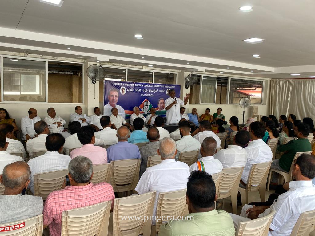 ಮಂಗಳೂರು: ಮಲ್ಲಿಕಟ್ಟೆಯ ಕಾಂಗ್ರೆಸ್ ಭವನದಲ್ಲಿ ದ.ಕ. ಜಿಲ್ಲಾ ಕಾಂಗ್ರೆಸ್ ಅಧ್ಯಕ್ಷ ಕೆ.ಹರೀಶ್ ಕುಮಾರ್ ಅಧ್ಯಕ್ಷತೆಯಲ್ಲಿ ನಡೆದ ಜಿಲ್ಲಾ ಕಾಂಗ್ರೆಸ್ ಮಾಸಿಕ ಸಭೆಯಲ್ಲಿ ಭಾಗವಹಿಸಿ ಅವರು ಮಾತನಾಡಿದರು.