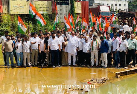 ಮಂಗಳೂರು: ಮಂಗಳೂರು ಜೆಪ್ಪು ಮಹಾಕಾಳಿಪಡ್ಪು ಅಂಡರ್ಬ್ರಿಜ್ಡ್ ಕಾಮಗಾರಿ ಕಳೆದ 4 ವರ್ಷಗಳಿಂದ ಯಾವುದೇ ಕಾಮಗಾರಿ ನಡೆಸದೇ ಕೇವಲ ಅವೈಜ್ಞಾನಿಕವಾಗಿ ಕಾಮಗಾರಿ ನಡೆಸಿ, 4 ವರ್ಷಗಳಿಂದ ಜನರಿಗೆ ಸತತವಾಗಿ ಸತಾಯಿಸದ ಬಿಜೆಪಿಯ ಸಂಸದ ಕ್ಯಾಪ್ಟನ್ ಬ್ರಿಜೇಷ್ ಚೌಟ ಮತ್ತು ಶಾಸಕ ವೇದವ್ಯಾಸ್ ಕಾಮತ್ ರಮೇಲೆ ಇಂದು ಕಾಂಗ್ರೆಸ್ ಕಾರ್ಯಕರ್ತರು ಐವನ್ ಡಿಸೋಜಾ ನೇತೃತ್ವದಲ್ಲಿ ಪ್ರತಿಭಟನೆಯನ್ನು ನಡೆಸುವ ಮೂಲಕ ತೀವ್ರವಾದ ಅಕ್ರೋಷವನ್ನು ವ್ಯಕ್ತಪಡಿಸಿದರು. ಕೂಡಲೇ ಅಂಡರ್ಬ್ರಿಜ್ಡ್ ಸಾರ್ವಜನಿಕ ಸೇವೆಗೆ ಬಿಡುಗಡೆಗೊಳಿಸಿ ಇಲ್ಲದಿದ್ದರೆ ಅಧಿಕಾರದಿಂದ ತೊಲಗಿ ಎಂದು ಕರೆ ನೀಡಿದರು 4 ವರ್ಷಗಳ ಹಿಂದೆ ಯು.ಟಿ ಖಾದರ್ರವರು ಈ ರಾಜ್ಯದ ಜಿಲ್ಲೆಯ ಉಸ್ತುವಾರಿ ಸಚಿವರಾಗಿದ್ದಾಗ ಸ್ಮಾರ್ಟ್ ಸಿಟಿಯ ಮೂಲಕ ರಾಜ್ಯ ಹೆದ್ದಾರಿಯಿಂದ ಮಂಗಳೂರಿಗೆ ಪ್ರವೇಶ ನೀಡಲು ಮಂಗಳೂರಿನ ಹೆಬ್ಬಾಗಿಲು ಎಂದೇ ಗುರಿತಿಸಲ್ಪಟ್ಟಂತಹ ಈ ರಸ್ತೆಯ ಕಾಮಗಾರಿಯನ್ನು ಮಾಡಿದ್ದರೂ ಕೇವಲ ಒಂದು ಅಂಡರ್ಬ್ರಿಜ್ಡ್ ಮಾಡಿಕೊಡಲು ಲೋಕಸಭಾ ಸದಸ್ಯರಿಂದ ಹಾಗೂ ಶಾಸಕರಿಂದ ಅಗಲಿಲ್ಲ ಎಂಬುದು ಬಹಳ ದುರಾದೃಷ್ಟಕರ ಎಂದು ಮಾನಾಡುತ್ತಾ ಐವನ್ ಡಿʼಸೋಜಾ ತಿಳಿಸಿದರು.