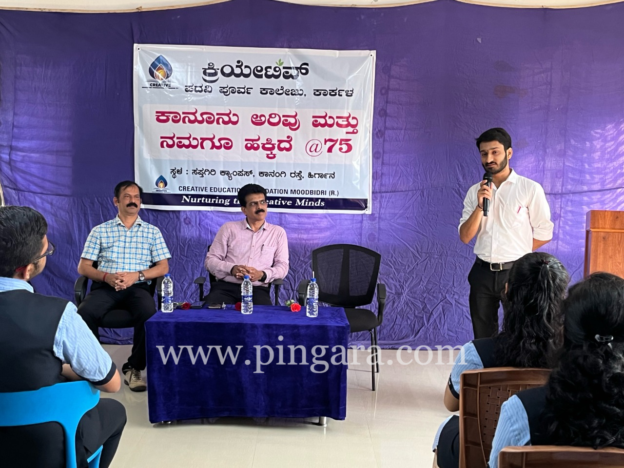 ಅವರು ಕಾರ್ಕಳದ ಕ್ರಿಯೇಟಿವ್ ಪ.ಪೂ ಕಾಲೇಜಿನಲ್ಲಿ 75ನೇ ಸ್ವಾತಂತ್ರ್ಯೋತ್ಸವದ ಅಮೃತ ಮಹೋತ್ಸವದ ಸವಿ ನೆನಪಿಗಾಗಿ ಕಾನೂನು ಅರಿವು ಮತ್ತು ಪ್ರಚಾರ ಅಭಿಯಾನದ ನಮಗೂ ಹಕ್ಕಿದೆ @ 75 ಕಾರ್ಯಕ್ರಮದಲ್ಲಿ ಭಾಗವಹಿಸಿ ಮಾತನಾಡಿದರು. ಅಧ್ಯಕ್ಷತೆ ವಹಿಸಿದ್ದ ಕಾಲೇಜಿನ ಪ್ರಾಂಶುಪಾಲರಾದ ವಿದ್ವಾನ್ ಗಣಪತಿ ಭಟ್ ನಾವೆಲ್ಲ ಕಾನೂನು ಮತ್ತು ಸಂವಿಧಾನದ ಆಶಯವನ್ನು ಗೌರವಿಸೋಣ ಎಂದು ಕರೆ ನೀಡಿದರು. ಕಾರ್ಯಕ್ರಮದಲ್ಲಿ ಸಂಸ್ಥಾಪಕರಾದ ಅಶ್ವಥ್ ಎಸ್.ಎಲ್, ಗಣಪತಿ ಕೆ.ಎಸ್, ಸಾರ್ವಜನಿಕ ಸಂಪರ್ಕ ಅಧಿಕಾರಿ ಲಿಶಾನ್ ಗೌಡ, ಉಪನ್ಯಾಸಕರಾದ ರಾಘವೇಂದ್ರ ರಾವ್, ಉಮೇಶ್, ಅಕ್ಷತಾ ಜೈನ್, ಚಂದ್ರಕಾಂತ್ ಉಪಸ್ಥಿತರಿದ್ದರು. ಉಮೇಶ್ ಸ್ವಾಗತಿಸಿ ಕಾರ್ಯಕ್ರಮ ನಿರೂಪಿಸಿದರು.