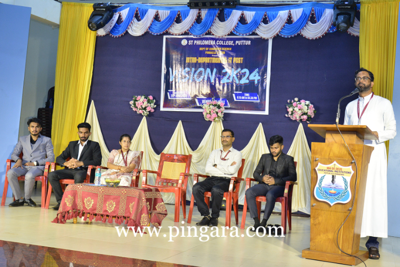 ಪುತ್ತೂರು, ಮೇ 29: ಸಂತ ಫಿಲೋಮಿನಾ ಕಾಲೇಜಿನ ಗಣಕ ವಿಜ್ಞಾನ ವಿಭಾಗ ಹಾಗೂ ಪಿನ್ಯಾಕಲ್ ಐಟಿ ಕ್ಲಬ್ಗಳ ಸಂಯುಕ್ತ ಆಶ್ರಯದಲ್ಲಿ ಆಯೋಜಿಸಲಾದ ಇಂಟ್ರಾ ಡಿಪಾರ್ಟ್ಮೆಂಟ್ ಐಟಿ ಫೆಸ್ಟ್ ವಿಶನ್ ೨೪ನ ಸ್ಪರ್ಧೆಗಳಿಗೆ ಇಂದು ನೀಡಲಾಯಿತು. ಕಾಲೇಜಿನ ಬೆಳ್ಳಿ ಹಬ್ಬ ಸಭಾಭವನದಲ್ಲಿ ಜರುಗಿದ ಉದ್ಘಾಟನಾ ಸಮಾರಂಭದ ಅಧ್ಯಕ್ಷತೆಯನ್ನು ವಹಿಸಿದ್ದ ಕಾಲೇಜಿನ ಪ್ರಾಂಶುಪಾಲರಾದ ವಂ| ಡಾ| ವಂ| ಡಾ| ಆ್ಯಂಟನಿ ಪ್ರಕಾಶ್ ಮೊಂತೇರೊರವರು ಕಾರ್ಯಕ್ರಮವನ್ನು ದೀಪ ಬೆಳಗಿಸುವುದರ ಮೂಲಕ ಉದ್ಘಾಟನೆ ಮಾಡಿದರು.